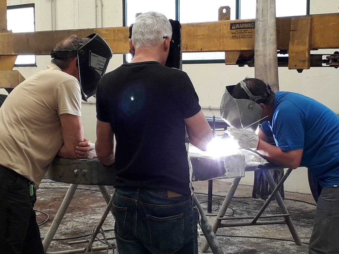 Ce matin, à l’arrivée du ferry, le soudeur est là ! Tant mieux ! Comme on avait tout payé d avance, condition obligatoire pour qu’ il vienne, on avait des inquiétudes un peu ! Mais non, il était bien là. Travail de pro, on dirait un chirurgien ! Tout son matériel bien aligné à côté de lui, il prend son temps, teste différents cordons possibles… finalement, au bout d’une heure, il y a juste un côté de presque fini ! … mais c ‘est bien fait ! … on vient de déjeuner tous les 3 dans le bateau … moment très sympa, dommage que ce soit si difficile de communiquer . Un peu d anglais, du portugais, de l’Espagnol et on arrive finalement à échanger ! …il a mangé comme un ogre ! Mais il paraît, malgré ça, avoir de l’énergie pour reprendre le boulot ! A suivre !…
