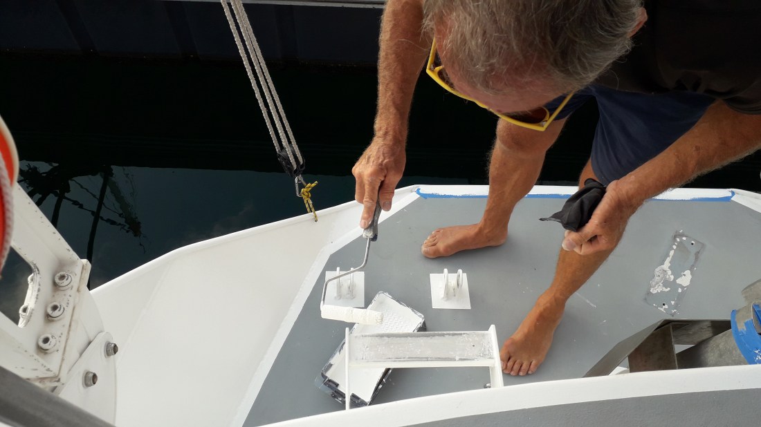 Hier, Erick a commencé à repeindre la jupe et le tableau arrière qui commençaient à faire un peu négligés !