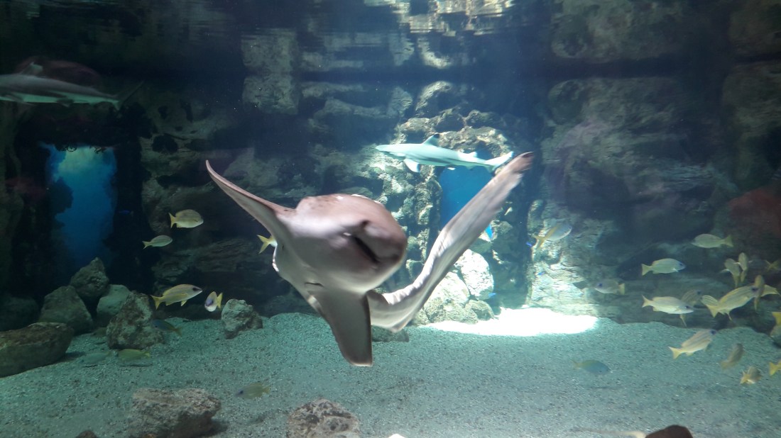 Et une foultitude de poissons en tout genres, de requins, de raies, de murènes de toutes sortes, des tortues, des crocodiles, des tas de petits poissons de toutes les couleurs. On s’en met plein les yeux et on passe de longs moments assis, devant les grands aquariums, à rêver doucement en regardant les poissons tourner.