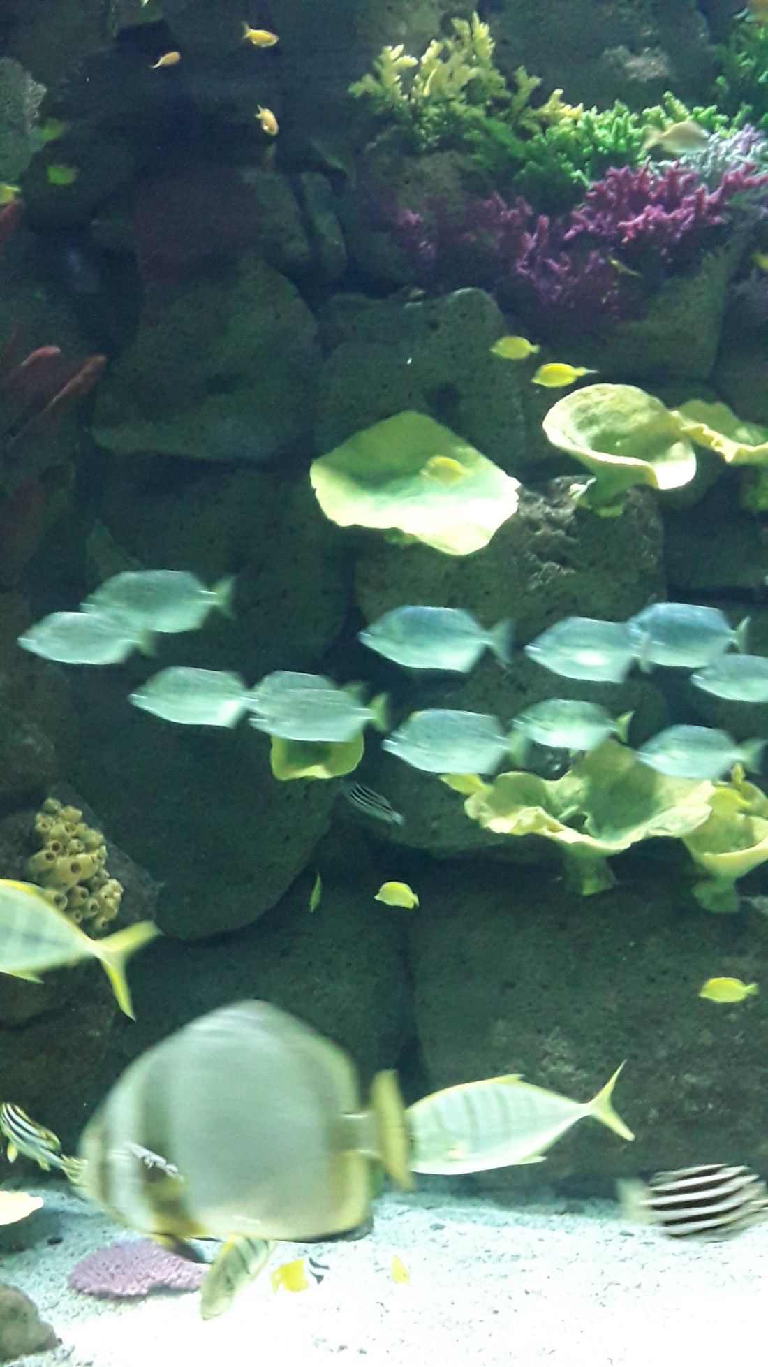 De très beaux aquariums, immenses, colorés, avec de belles reproductions de fonds marins.