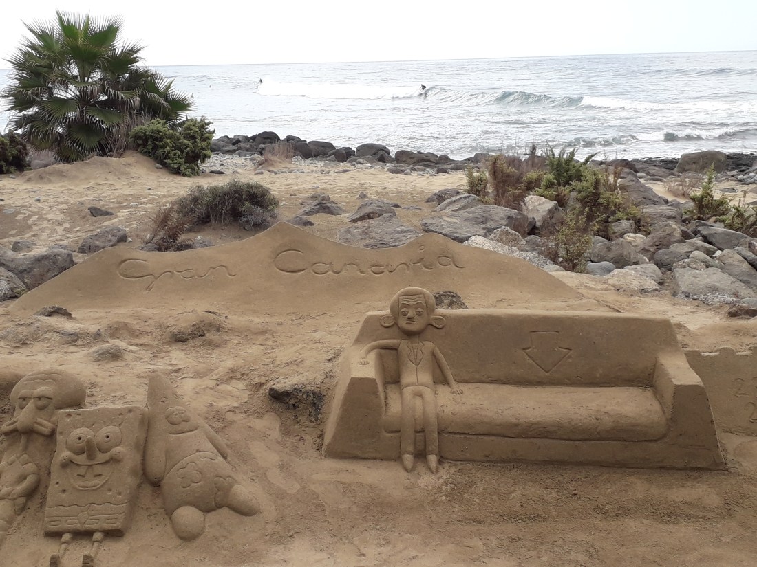 Et puis, sur le bord de mer, des sculptures de sable, faites par des surfeurs, pour gagner des sous, entre 2 vagues ! Plutôt pas mal !