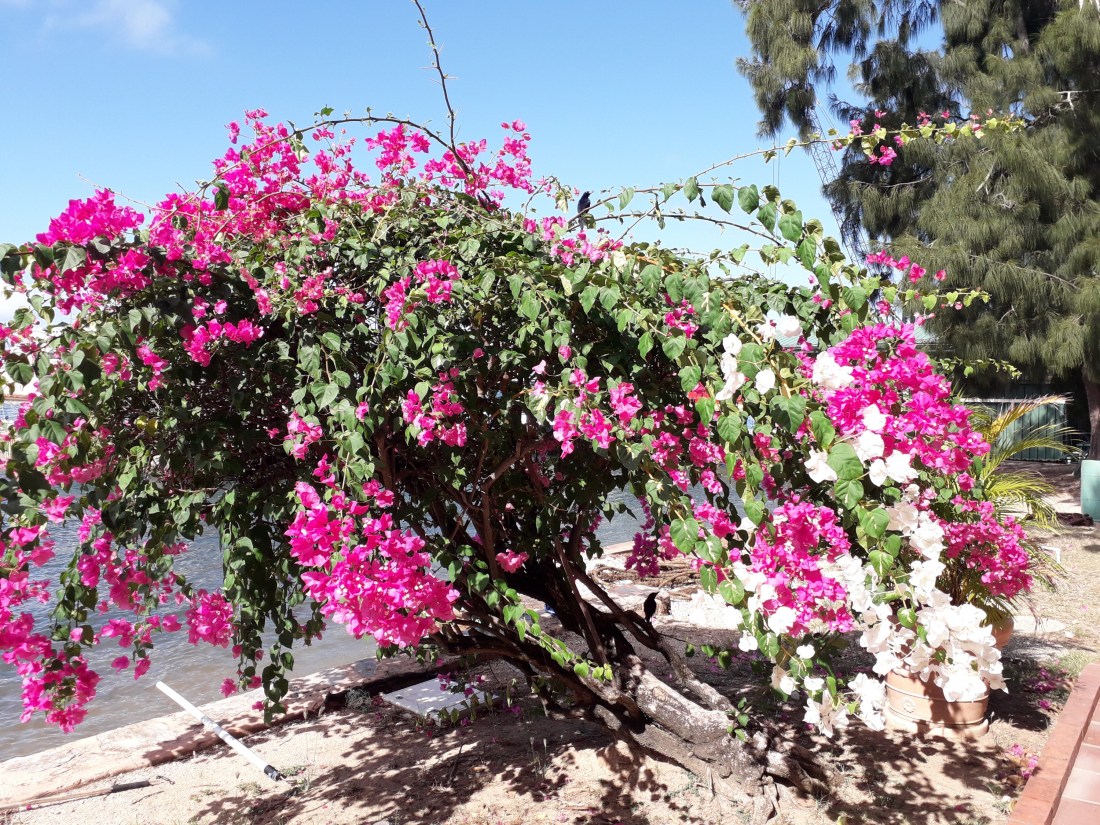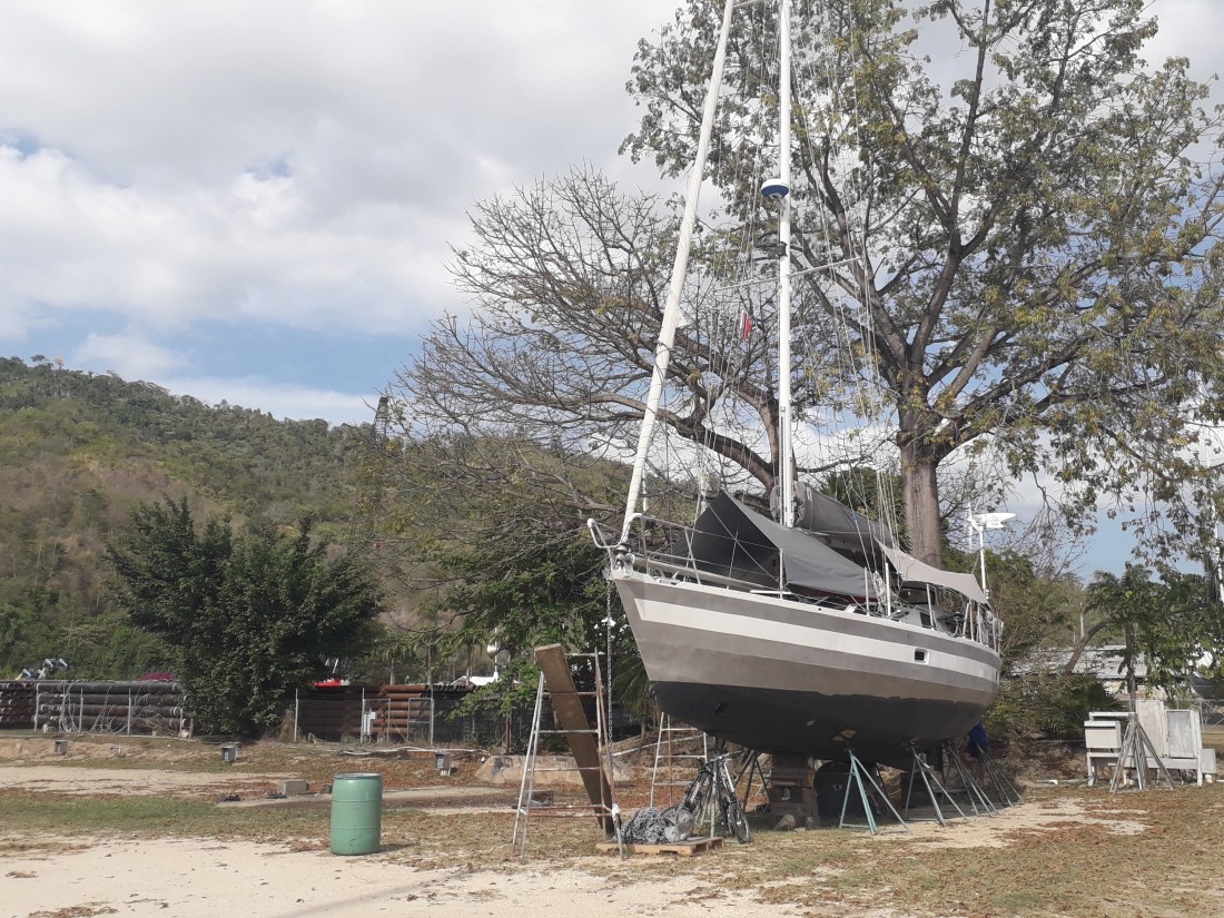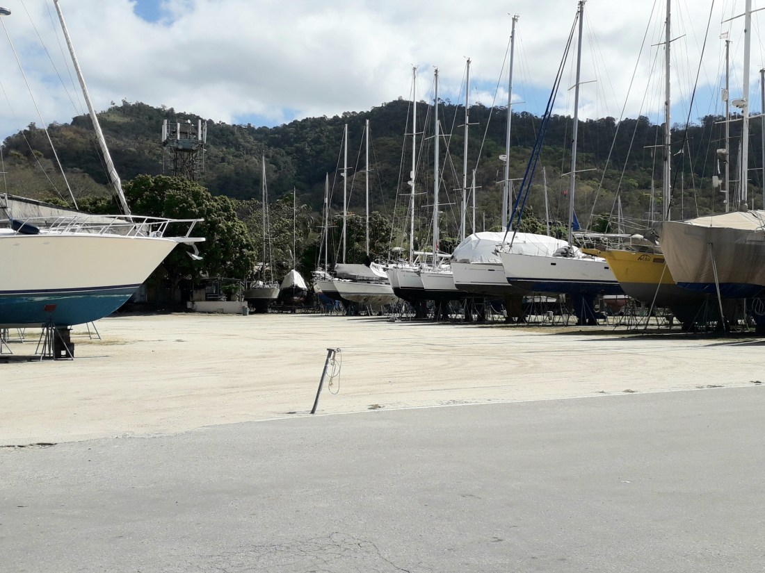 Cela fait 3 mois que nous sommes ici ! 3 mois que, dans la nuit calme et douce du 12 au 13 janvier, on entrait dans la baie, éclairée par une magnifique pleine lune, après 16 jours de traversée. Le souvenir de cette arrivée reste un moment très fort , magique… mais magique, la suite l’a été beaucoup moins ! … le problème de la dérive d’abord, et puis, inimaginable, ce confinement obligatoire qui s’annonce long et dont on ne sait quelle forme prendra sa fin.J’ai un peu abandonné le blog car nos journées se succèdent sans grand chose à raconter ! Des journées toutes un peu identiques, dans notre chantier toujours désert.Surtout là, pendant ces 4 jours fériés qui marquent Pâques ici ! … le monde est encore plus arrêté que pendant le confinement !Vendredi, on est allé au Centre de Santé pour faire enlever les points du doigt d’Erick … un peu inquiet par l’absence de maxi taxis ou de taxis, mais confiants puisqu’ ils nous avaient donné rendez vous ! Après avoir attendu un peu trop longtemps sans succès, à l’arrêt de bus