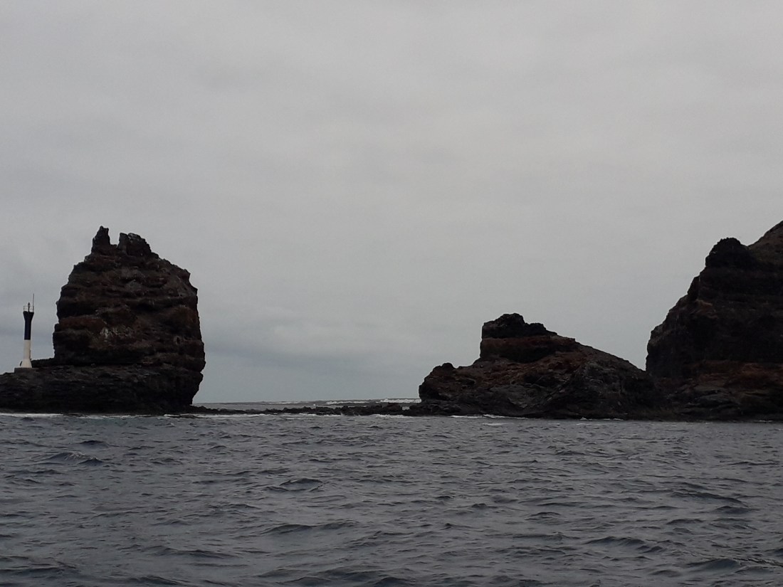 Au large, on voit les îlots Montaña Clara , le gros et roc del oueste le petit. La Graciosa fait partie de l’archipel de Chinijo, 5 iles, une seule habitée, la Graciosa , une autre assez grande, Alegranza, où il est interdit de débarquer, 2eme plus grande colonie de puffins cendrés du monde … Et puis roc del este, plus loin au large, pas éclairée la nuit et qui nous a donné un peu d’angoisses en arrivant de Madere !
