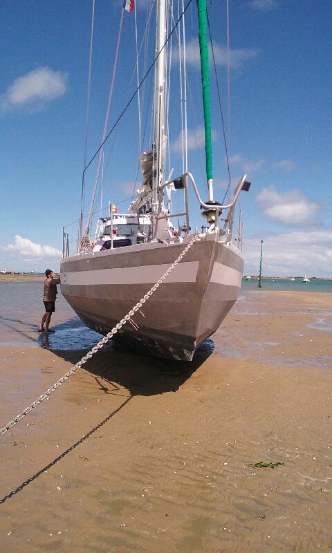Il lui fallait aussi attendre l’arrivée du colis que je lui avais envoyé… une veste et un pantalon de « ciré » , de mer disons plutôt, car celui qu’il avait, un vieil ensemble de chez Decathlon était complètement fichu et ne protégeait plus du tout de l’eau ! … il a passé sa traversée trempé et n’avait pas du tout envie de faire la 2eme étape dans les mêmes conditions !