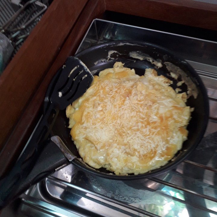 Des activités ludiques, comme faire sa première omelette ! … jusqu’à présent, les œufs ne se concevait qu’au plat ! Et elle est très belle son omelette au fromage ! 3 œufs et beaucoup de fromage, un vrai repas copieux !