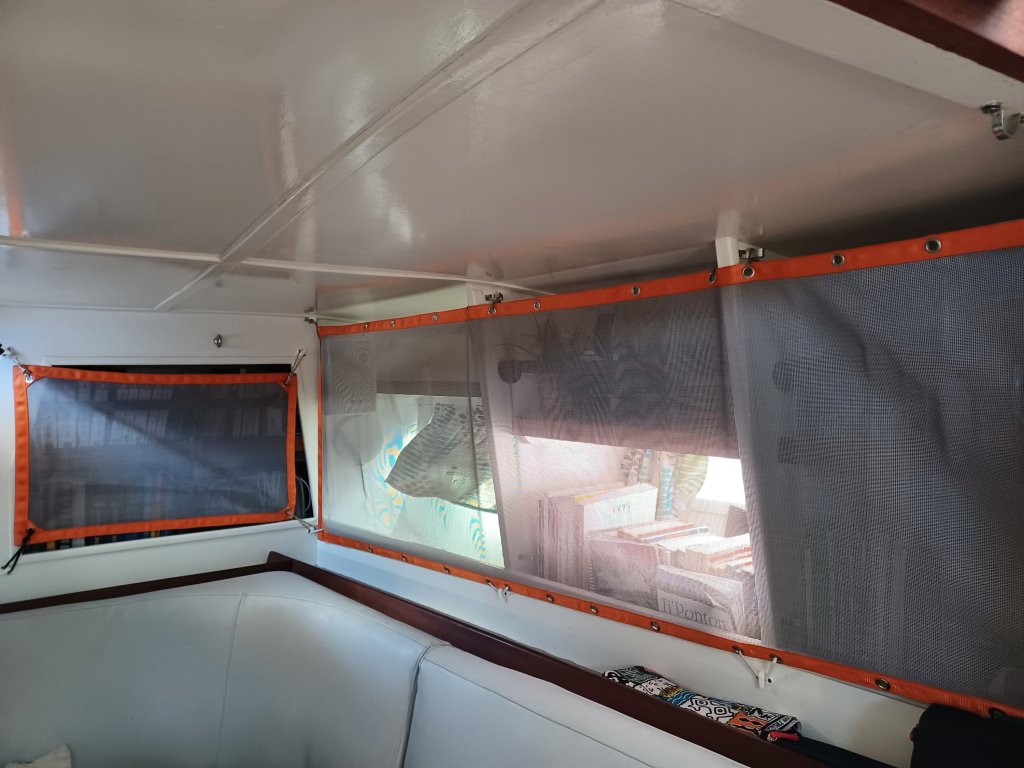 Pour l’instant, on prépare le bateau. On fait des listes de ce qu’il faut faire. Aujourd’hui, on a enfin fixé les protections anti chutes d’objets faites avant le départ. On ne savait pas trop comment les faire tenir et voilà, c’est fait et ça tient bien. Le bateau peut se retourner !