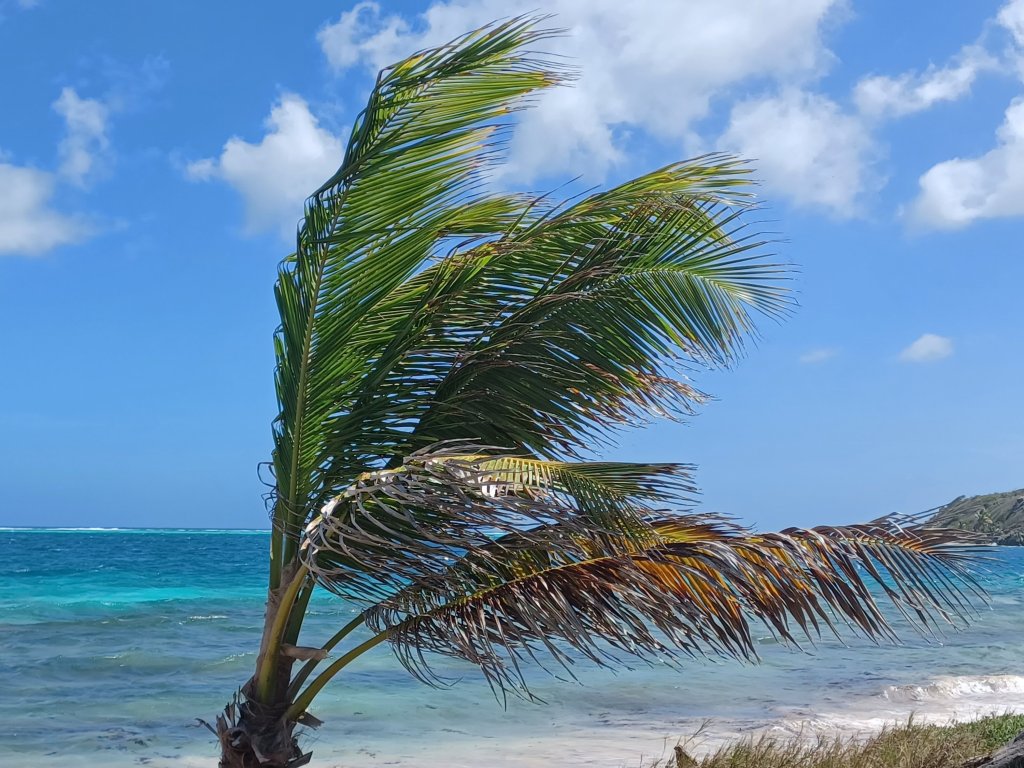 Là, je suis sur le banc, sous l’arbre, près de la petite église, face à la mer bleue étincelante bordée au large par les hauteurs sauvages d’Union Island … avec le wifi gratuit du Bon Dieu … la vie est plutôt pas mal des fois.🤞