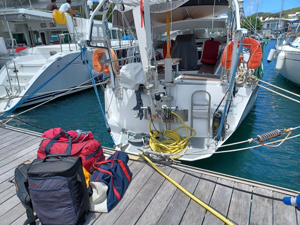 Tout à l’heure, Mina et moi on va prendre le taxi pour l’aéroport … et dimanche, si la situation météo continue comme elle est annoncée, Erick va quitter le Marin et entamer sa traversée.