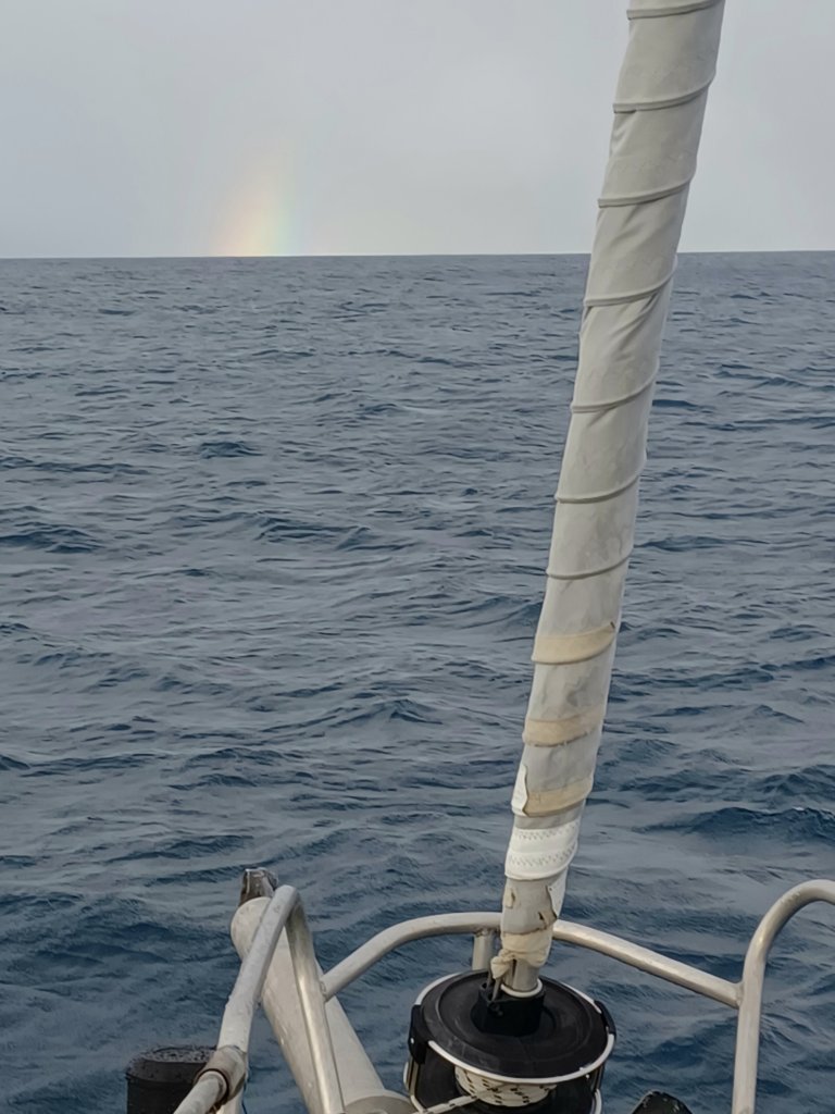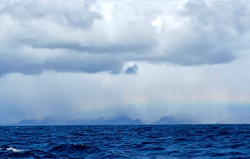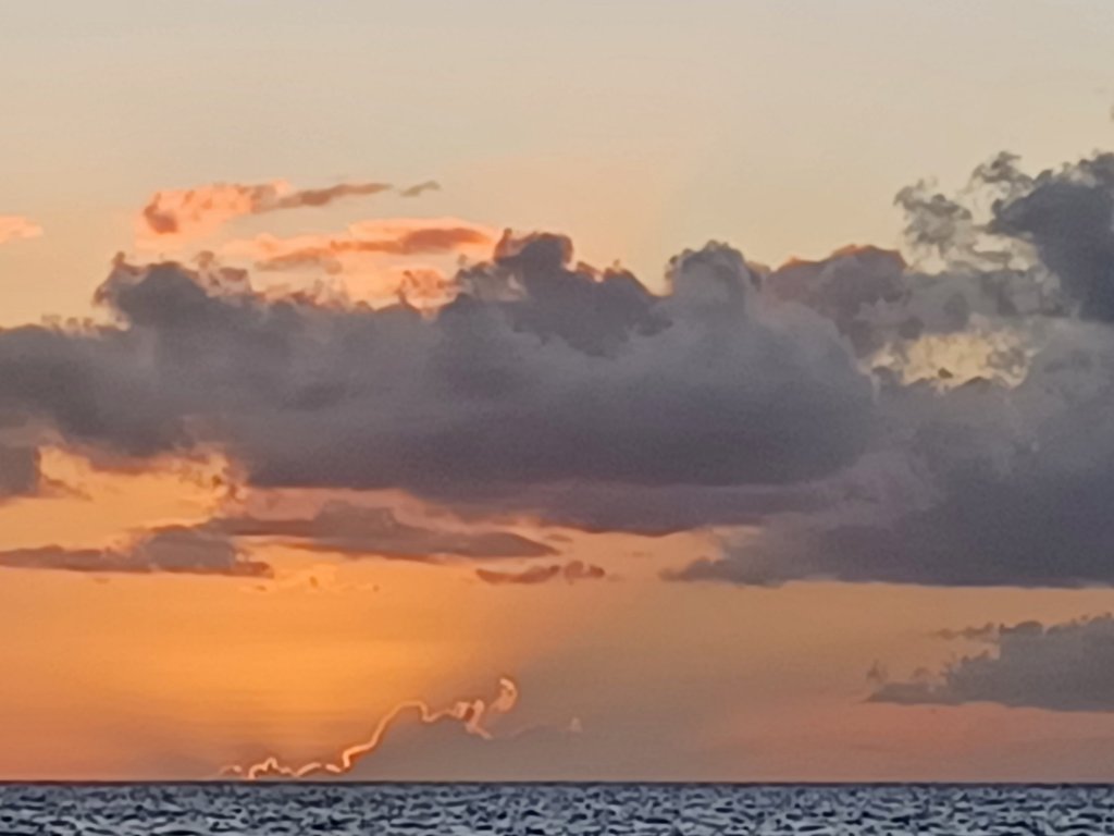 Au large, les lumières d’un paquebot de croisière, juste le bruit de l’éolienne, un bruit rassurant qui nous dit que les batteries se rechargent.