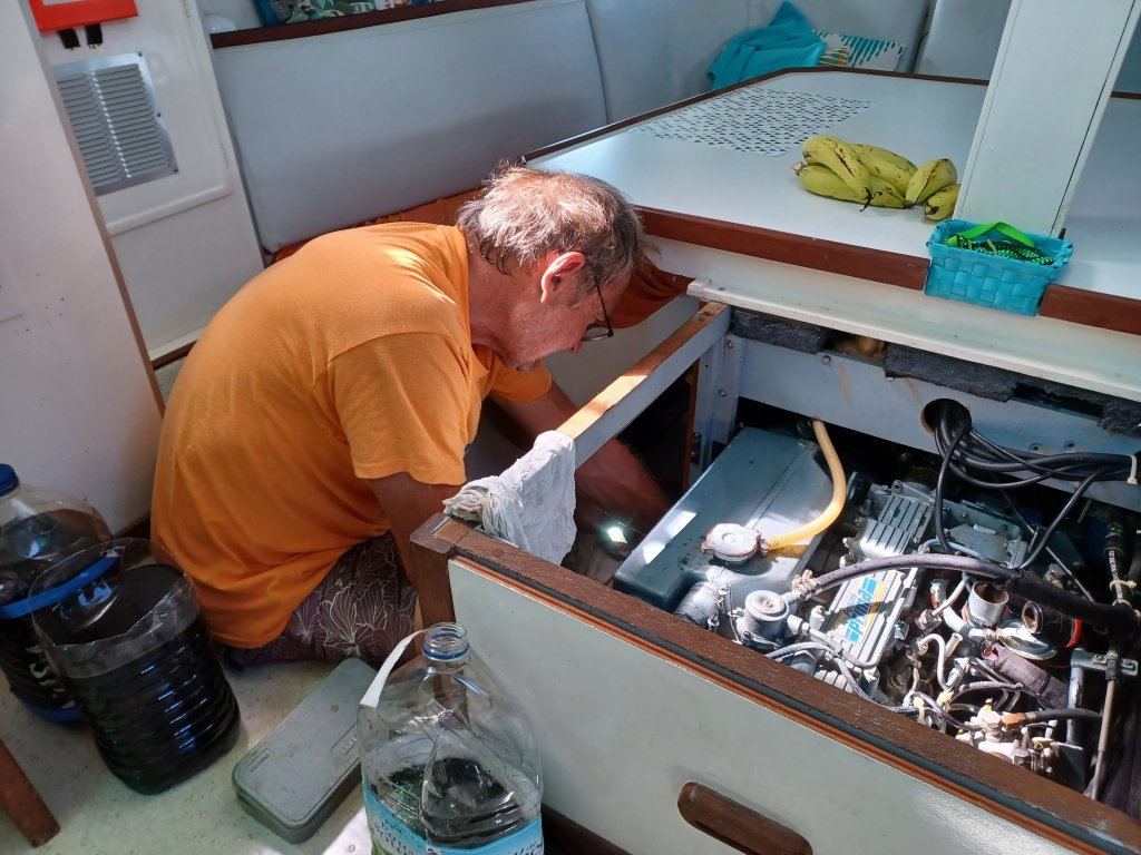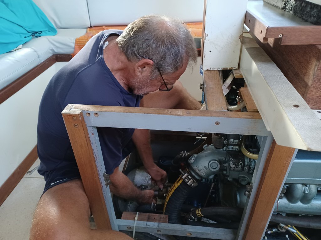 Ce matin, on a donc appelé un autre mécanicien, Didier. Recommandé chaleureusement par notre copain Philippe. C’est le cousin du copain sur le bateau duquel il va faire la transat retour.