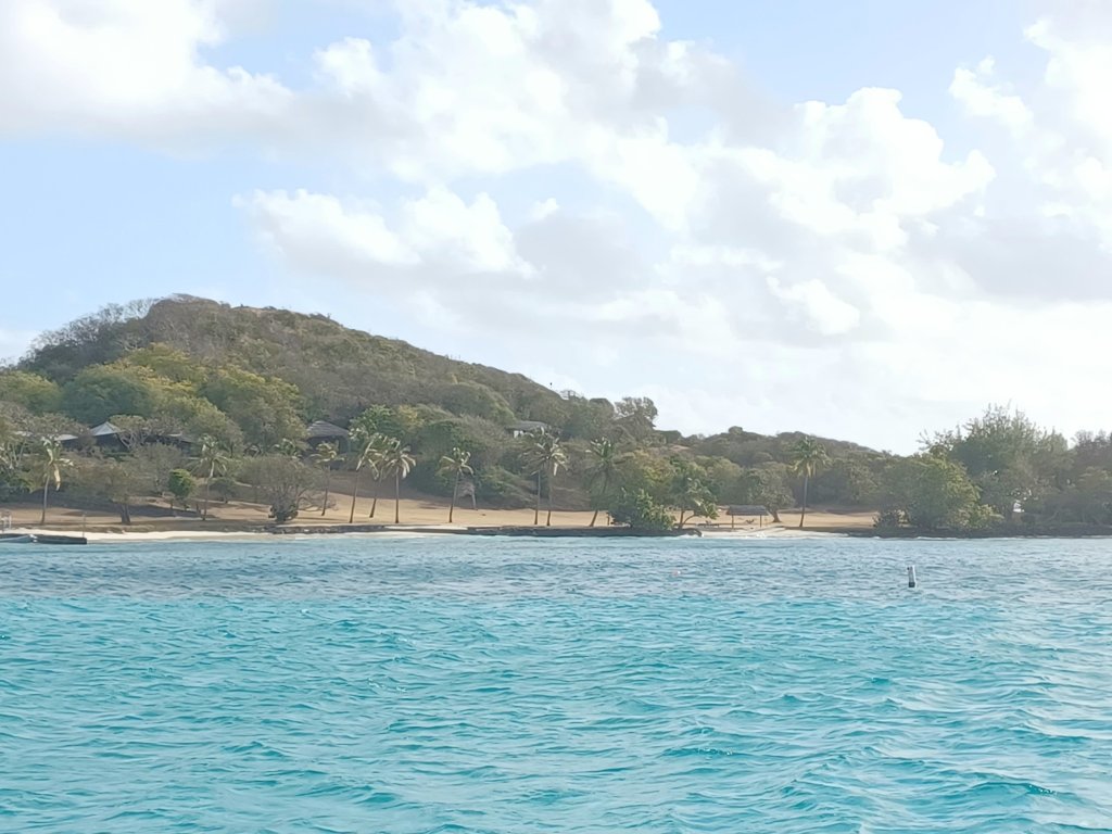 Vent dans le nez, un bon clapot, on est vite douchés ! … mais on a un objectif ! … 11h15 on arrive à l’autre bout de la baie où son bateau est mouillé.