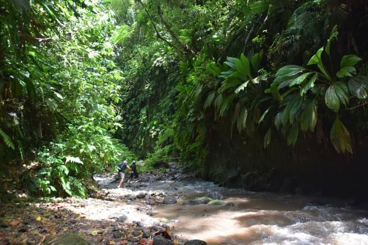 Sinon, avant de quitter le mouillage, on a fait, jeudi dernier une très belle rando, la remontée de la rivière Falaise qui descend de la Montagne Pelée .