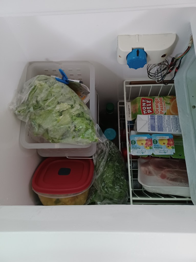 Le frigo à nettoyer et repeindre, tant qu’on y est, il en avait besoin de toutes façons ! Et c’est du boulot ! … maintenant, c’est fait, juste il faut attendre que la peinture sèche ! Pas de beurre au petit déjeuner quoi ! …
