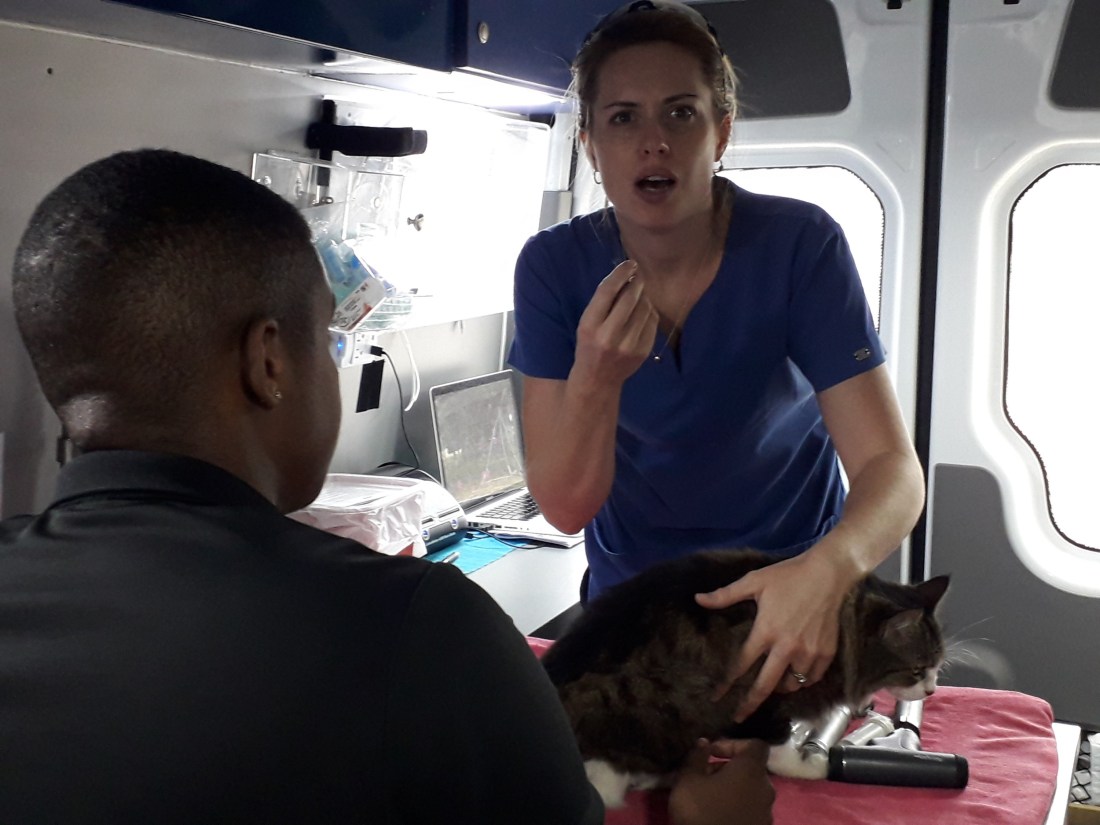 Super concept ce camion ambulant, très bien équipé comme un vrai cabinet de véto. La vétérinaire, une jeune femme d’origine anglaise, très calme et douce.