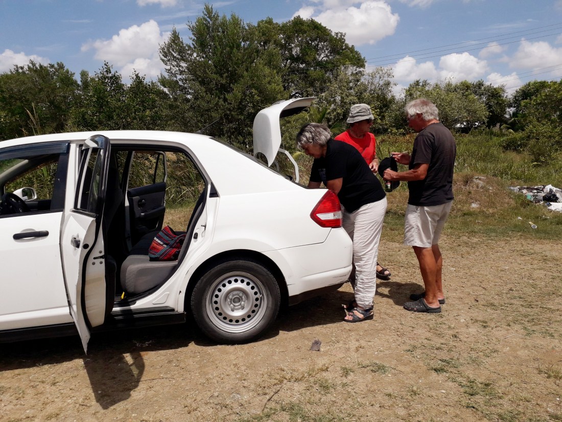 Alors, 3 jours de vacances, à aller découvrir tous les 4, ce qui se passe au-delà du chantier ! Et surtout découvrir l’ile … un peu sidérés déjà par l’état du réseau routier ! Des trous, parfois énormes tout le long des routes que nous prenons, ça demande une attention de tous les instants. Et on tape le bas de caisse continuellement.