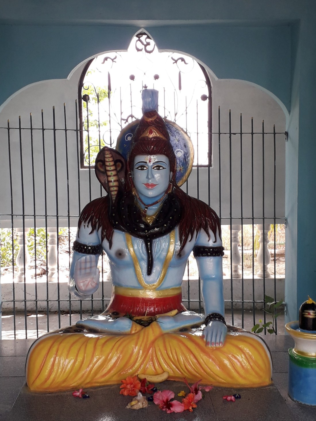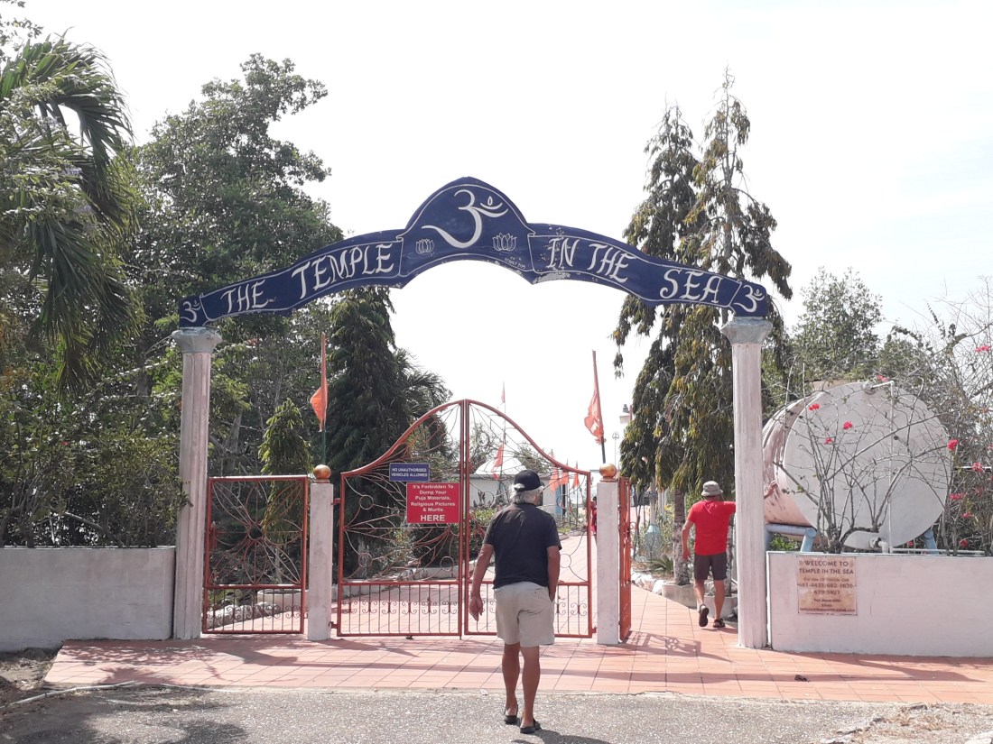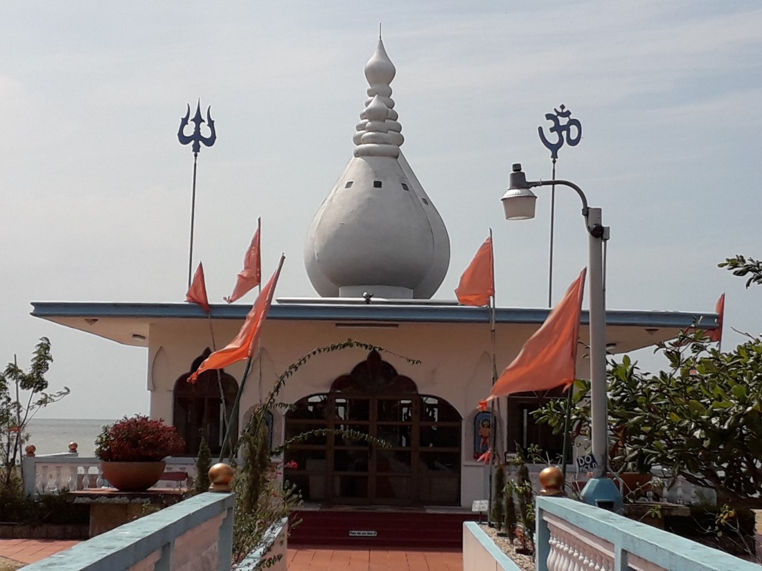 Seeda Sadhu ne s’est pas laissé abattre et pendant 40 ans, puisqu’on lui refusait de construire là où il n’avait pas de droit de propriété, il a décidé de bâtir son temple en gagnant du terrain sur la mer qui n’appartient à personne … et il a transporté avec son vélo, graviers , sable, rochers pour faire une digue, emportée régulièrement par la mer et y construire son temple. Finalement, en 1995, pour fêter le 150ème anniversaire de l’arrivée des premiers indiens bengalis à Trinidad, le Conseil national de la culture indienne a décidé de lui donner un coup de pouce et a terminé le temple qui sert maintenant à des services religieux chaque dimanche, et où les gens viennent faire des offrandes.
