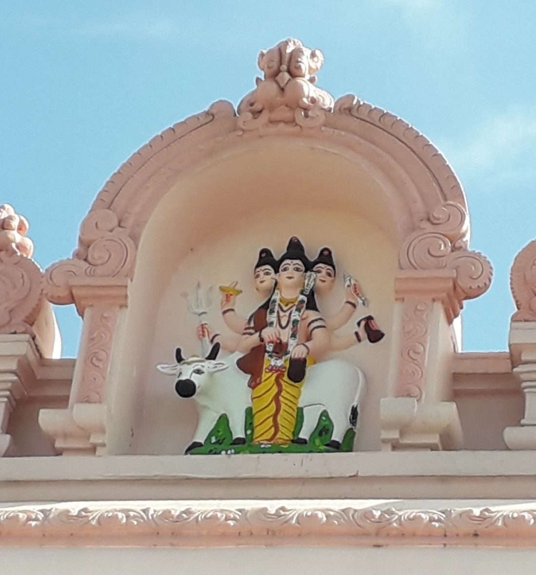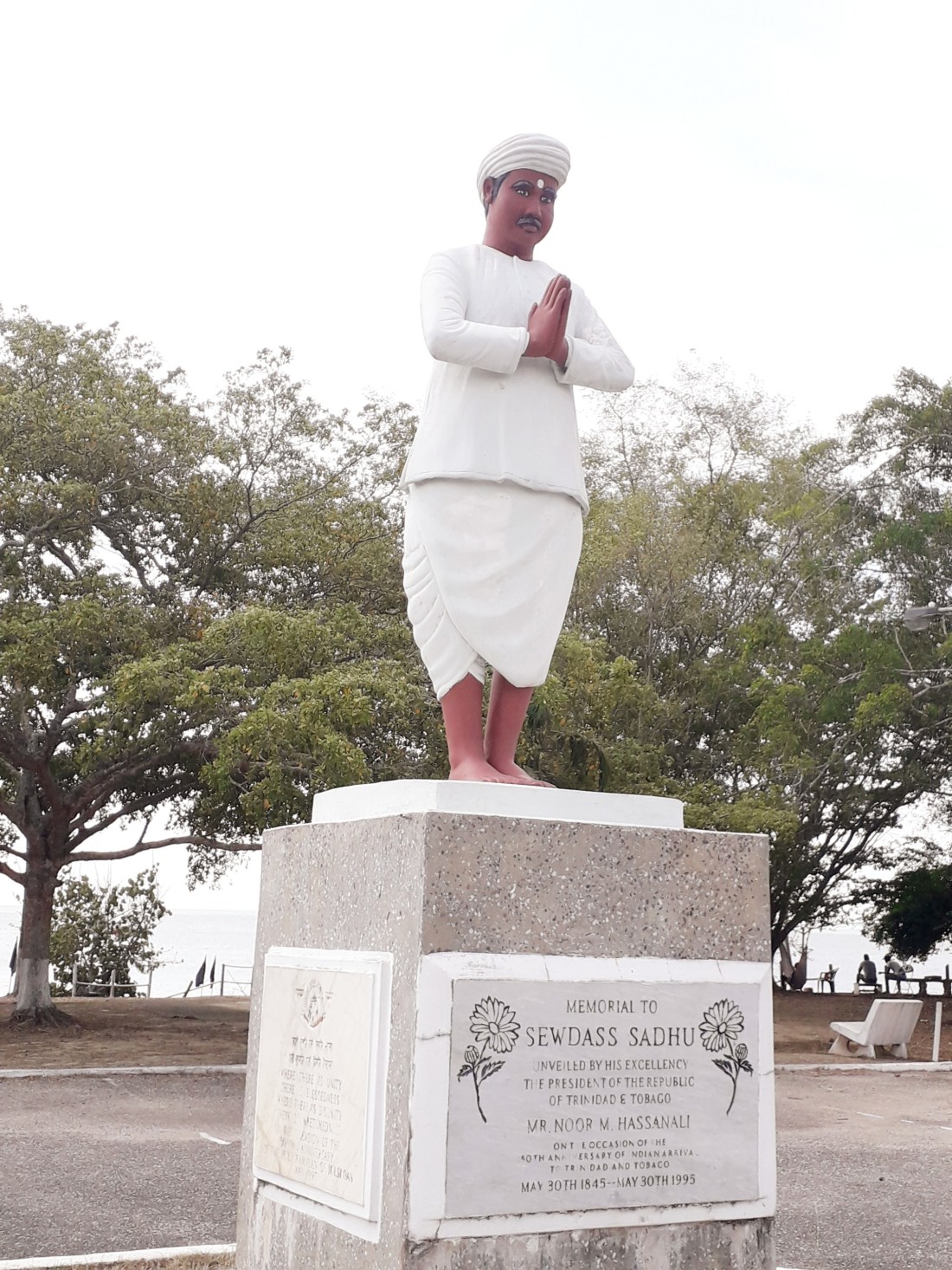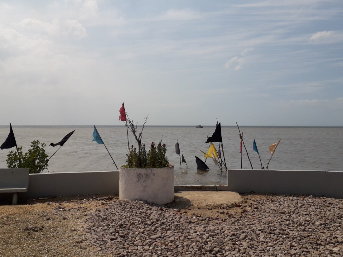Seeda Sadhu ne s’est pas laissé abattre et pendant 40 ans, puisqu’on lui refusait de construire là où il n’avait pas de droit de propriété, il a décidé de bâtir son temple en gagnant du terrain sur la mer qui n’appartient à personne … et il a transporté avec son vélo, graviers , sable, rochers pour faire une digue, emportée régulièrement par la mer et y construire son temple. Finalement, en 1995, pour fêter le 150ème anniversaire de l’arrivée des premiers indiens bengalis à Trinidad, le Conseil national de la culture indienne a décidé de lui donner un coup de pouce et a terminé le temple qui sert maintenant à des services religieux chaque dimanche, et où les gens viennent faire des offrandes.