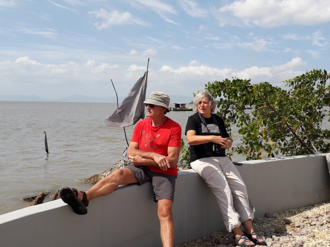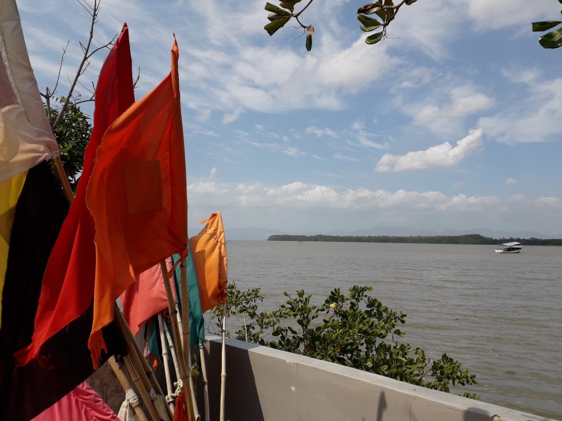 Le cadre ici est plutôt sympa, avec cette belle baie, toujours agitée du mouvement d’un tas de petits bateaux qui sillonnent, à fond la caisse, l’eau, on ne sait trop vers quoi, ni pourquoi ! Et depuis 3 semaines bientôt que nous sommes là, je reste chaque jour, en voyant cette baie, émue qu’on soit arrivés là, pour jeter l’ancre, par cette magnifique nuit de presque pleine lune, après notre traversée ! Vraiment des moments magiques, l’arrivée, le matin pour découvrir où on était arrivés.