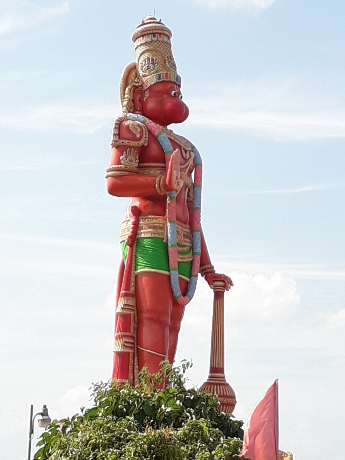 Au retour, arrêt près d’un immense temple rose dominé par une statue de 26 mètres de haut en l’honneur au dieu Hanuman, le roi des singes. Impressionnant …