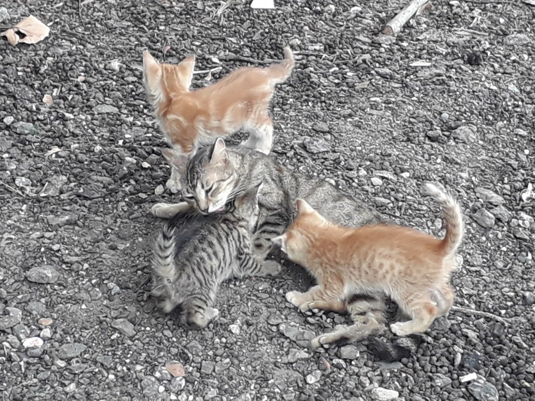 Une chatte et ses 3 chatons, à côté de l’embarcadère pour la visite de la mangrove … adorable !