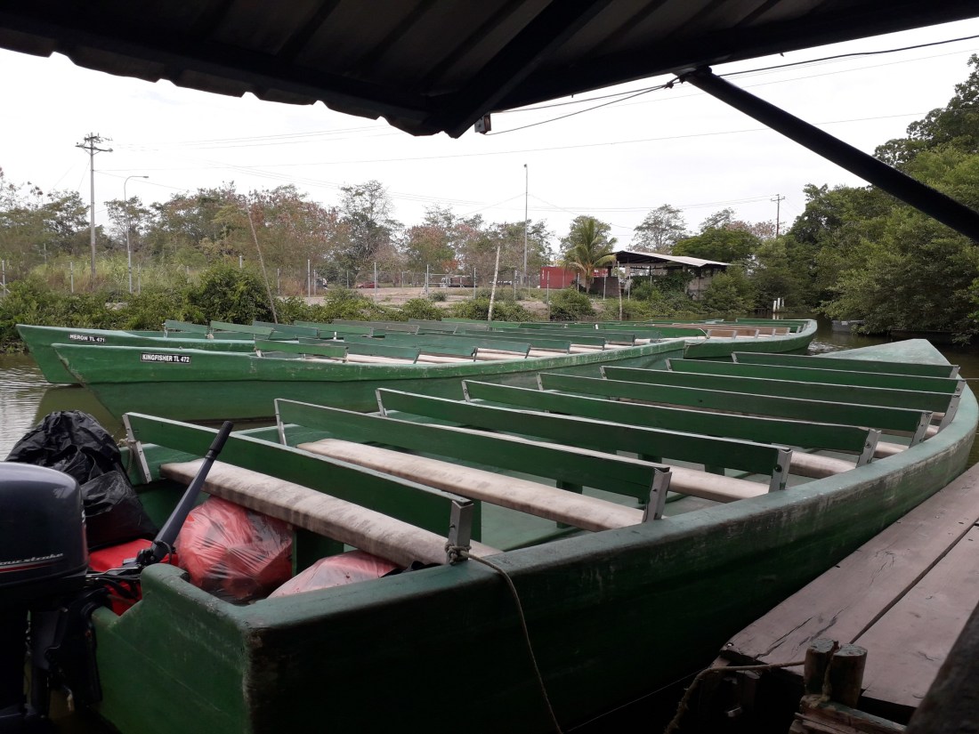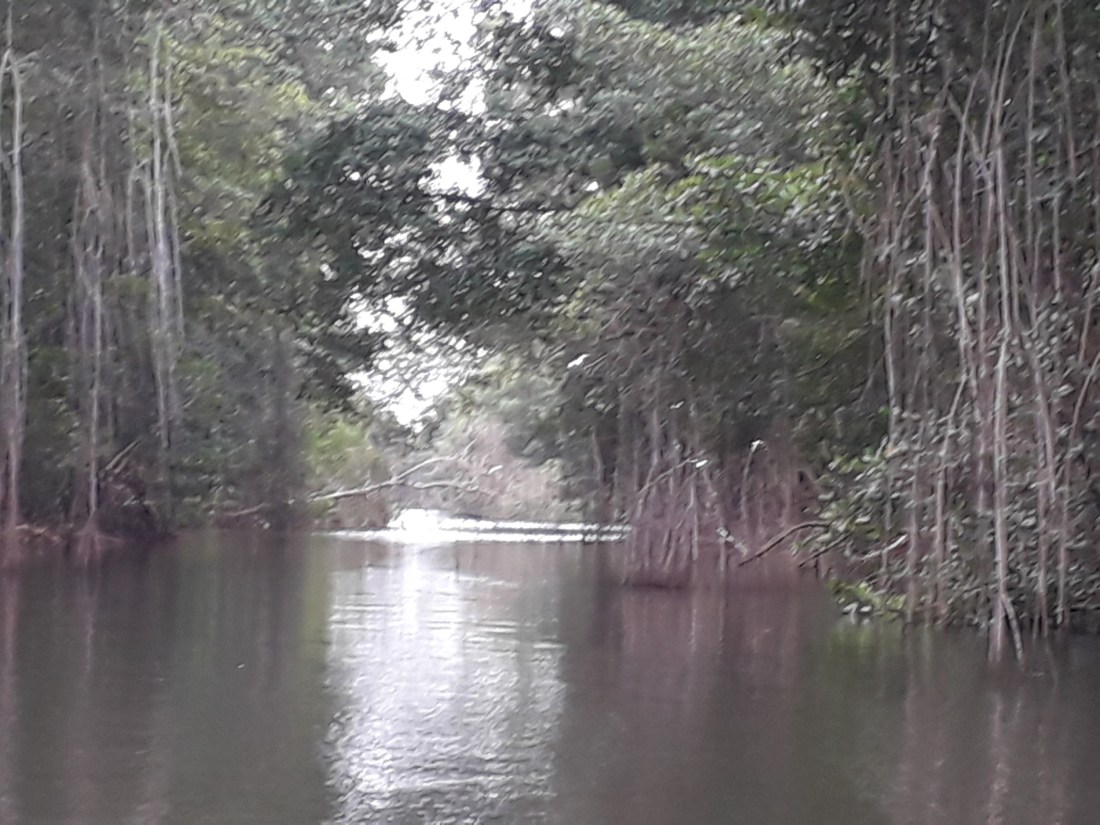 Et lundi, réserve des oiseaux donc dans les marais de Caroni , une immense mangrove sur l’estuaire de la rivière Caroni, là où elle se jette dans le golfe de Paria … et surtout, à 16h , balade en barque dans les marais, jusqu’à 18h30, pour voir, à l’heure du coucher du soleil, le retour des ibis flamboyants qui chaque jour, partent passer la journée au Venezuela, et reviennent le soir, passer la nuit dans les marais.