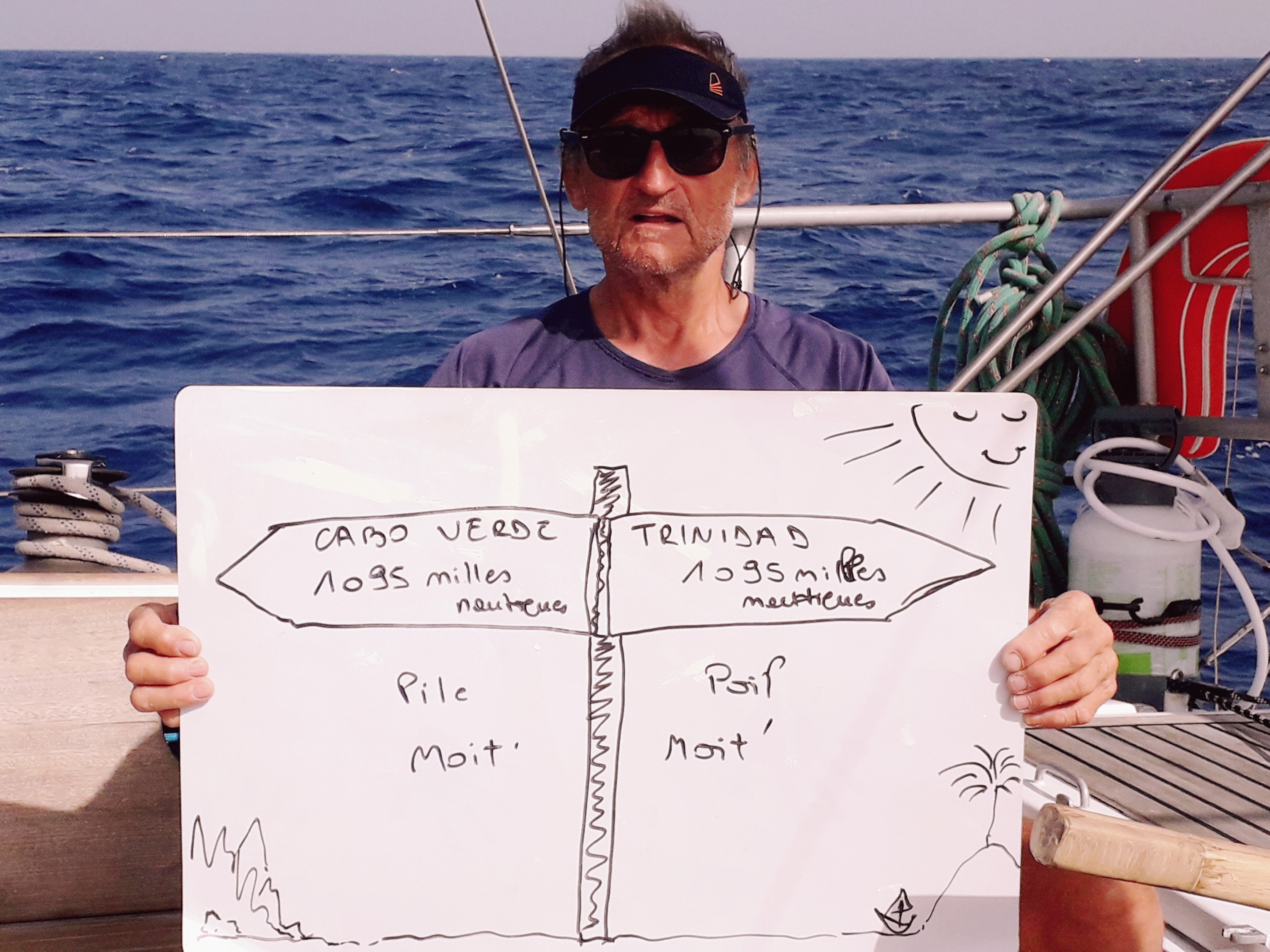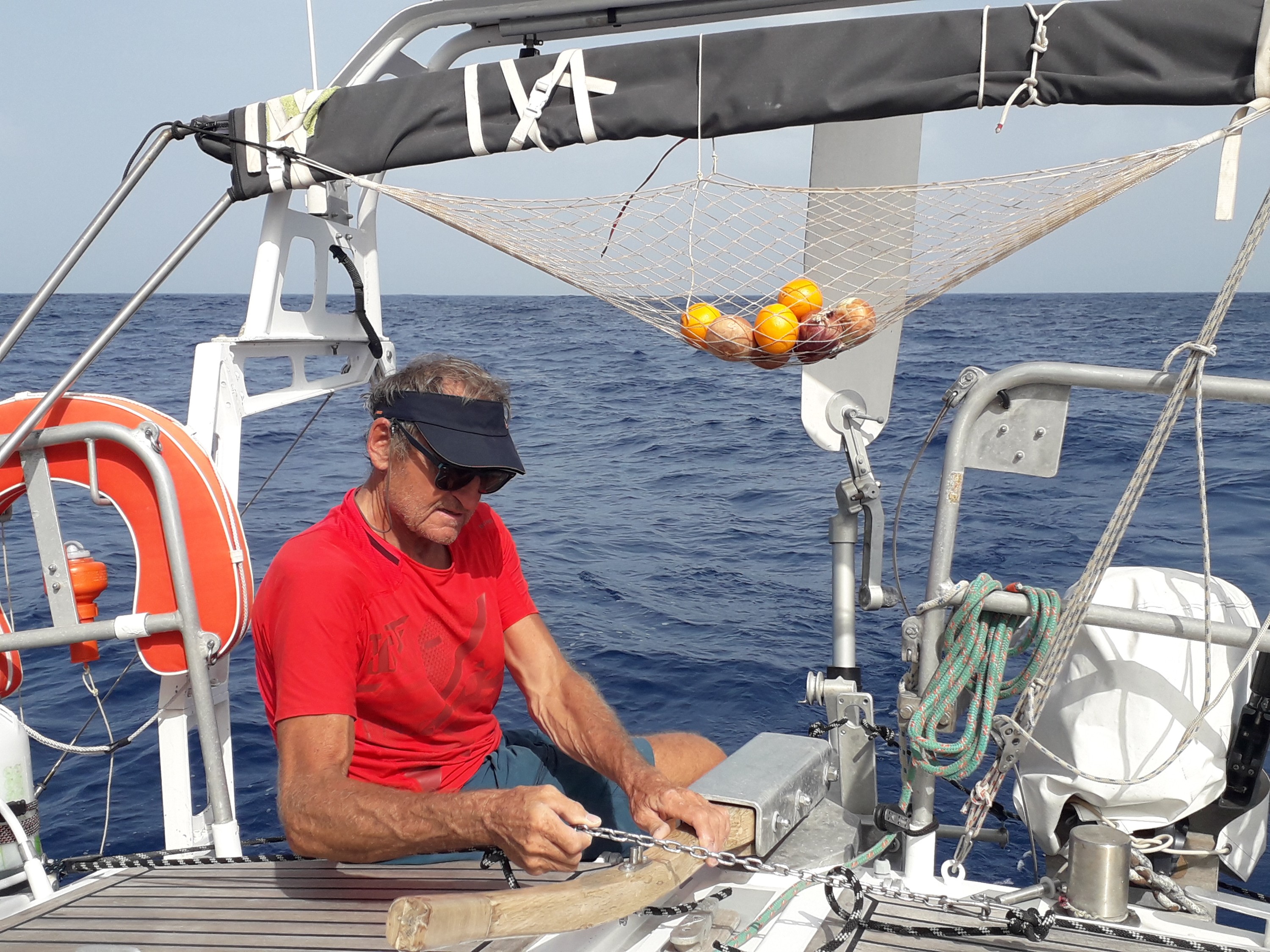 Dernier jour ! Demain matin , on se jette dans le grand bain ! … les pleins sont faits, eau, gaz oil … plein de choses à manger en chemin,n que ce serait vraiment dommage de couler avec toutes ces provisions ! … psychologiquement, je suis, moi, un peu plus prête à partir malgré l’absence de la dérive ! … la météo annonce , au moins pour les premiers jours, un temps parfait … tout va bien ! …. donc, il faut prévoir un silence radio de 16 jours minimum … et plutôt 20 jours peut-être ! Ou peut-être jamais on trouvera la côte de l’autre côté, tout le monde n’a pas l’étoffe de Christophe Colomb ! … on a plein de livres à lire … on va se partager le temps par tranches de 2h. … et voilà ! Tout va bien se passer ….