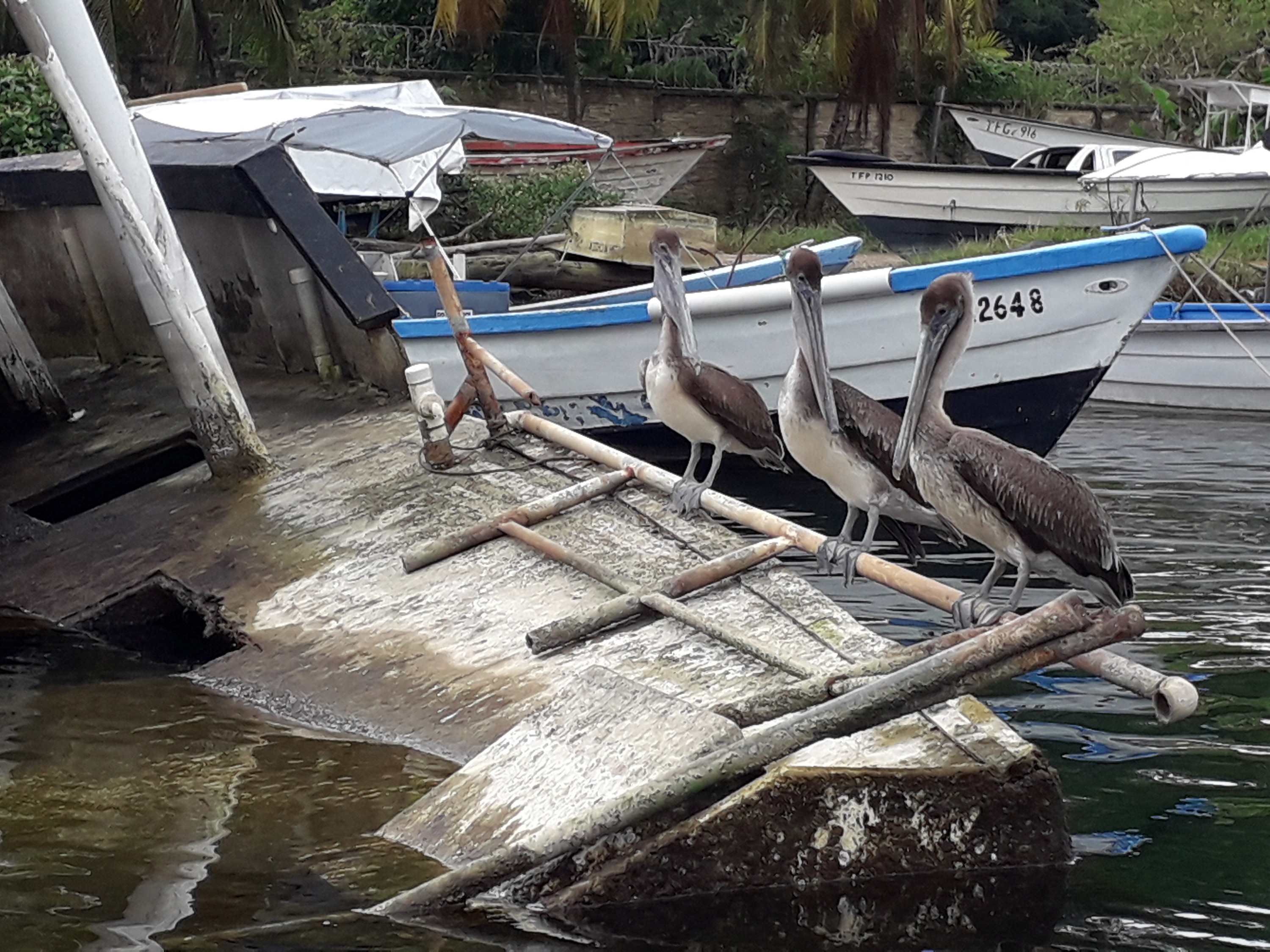 Il y a toute une petite colonie de pélicans au fond de la baie.