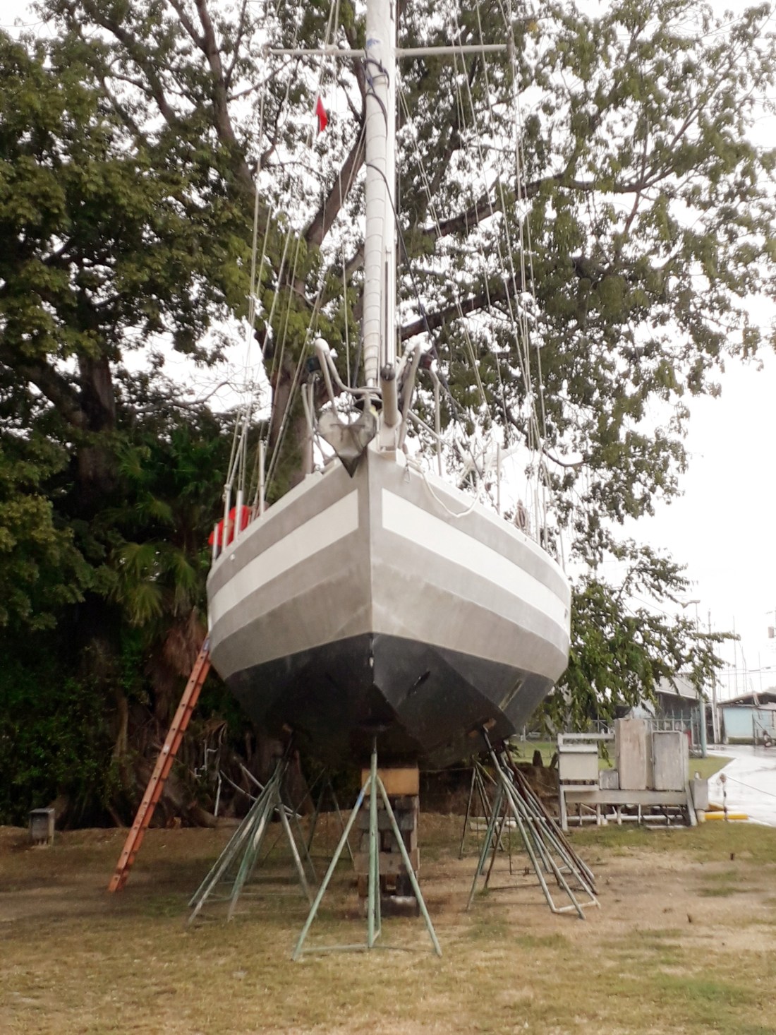 C’est bien la peine tout ça pour un bateau au sec et qui ne va peut être plus jamais naviguer faute d’une belle dérive.