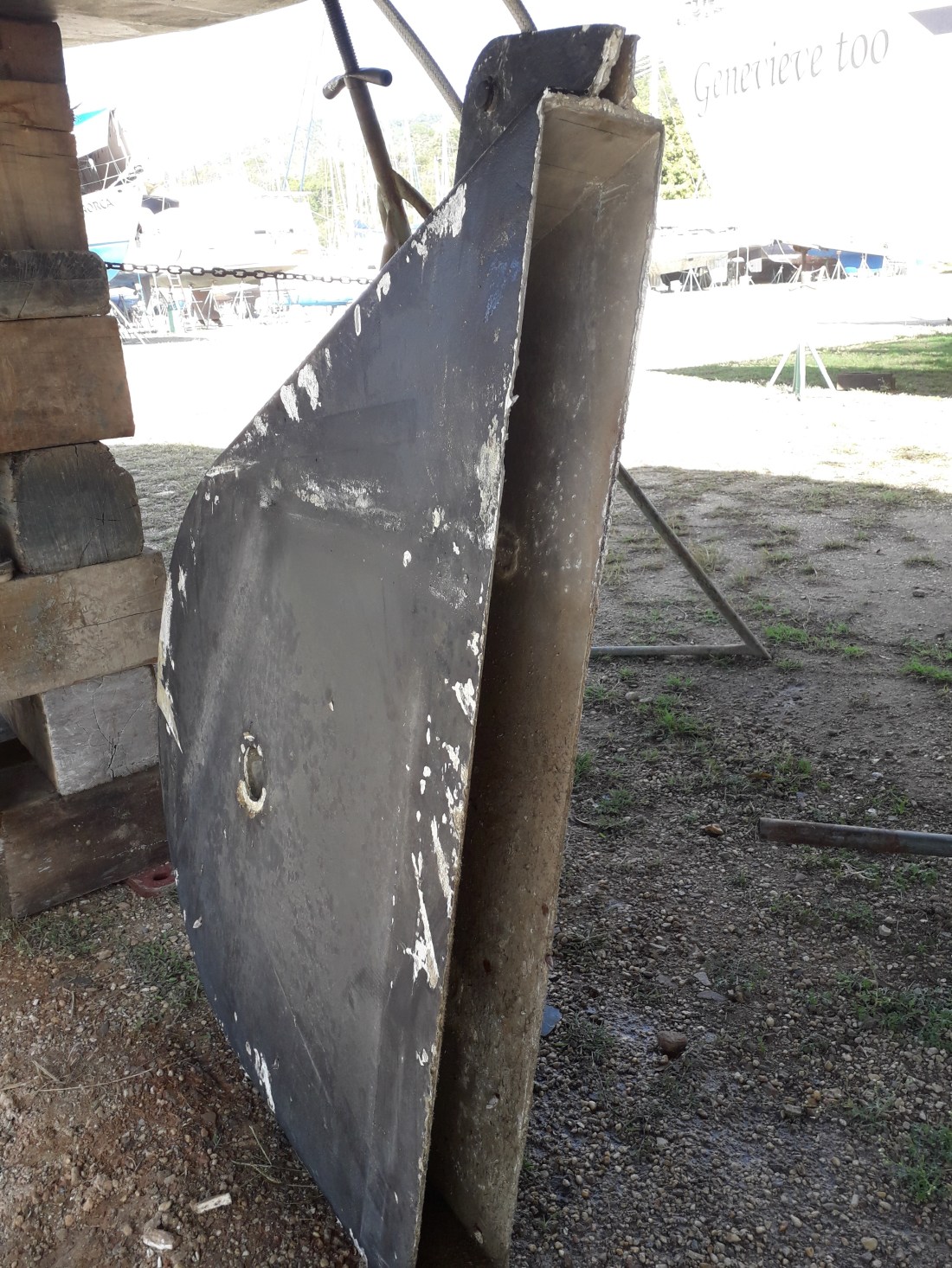 On a pu, grâce à Philippe, mon beau frère, récupérer des photos des plans de la dérive , qui eux dormaient sagement au sec, dans un placard à la maison. C’est bien, comme ça on a toutes les côtes. En plus, on avait eu la chance de rencontrer un couple qui a un Nouani, un bateau du même architecte, mêmes dimensions, mais coque en forme et non à bouchains comme pour Princess Julia. Eux, ils avaient le plan de leur dérive. On a pu comparer les côtes à celles envoyées par Philippe, c’est pile poil la même dérive. Donc on a bien toutes les bonnes indications pour commencer les travaux.