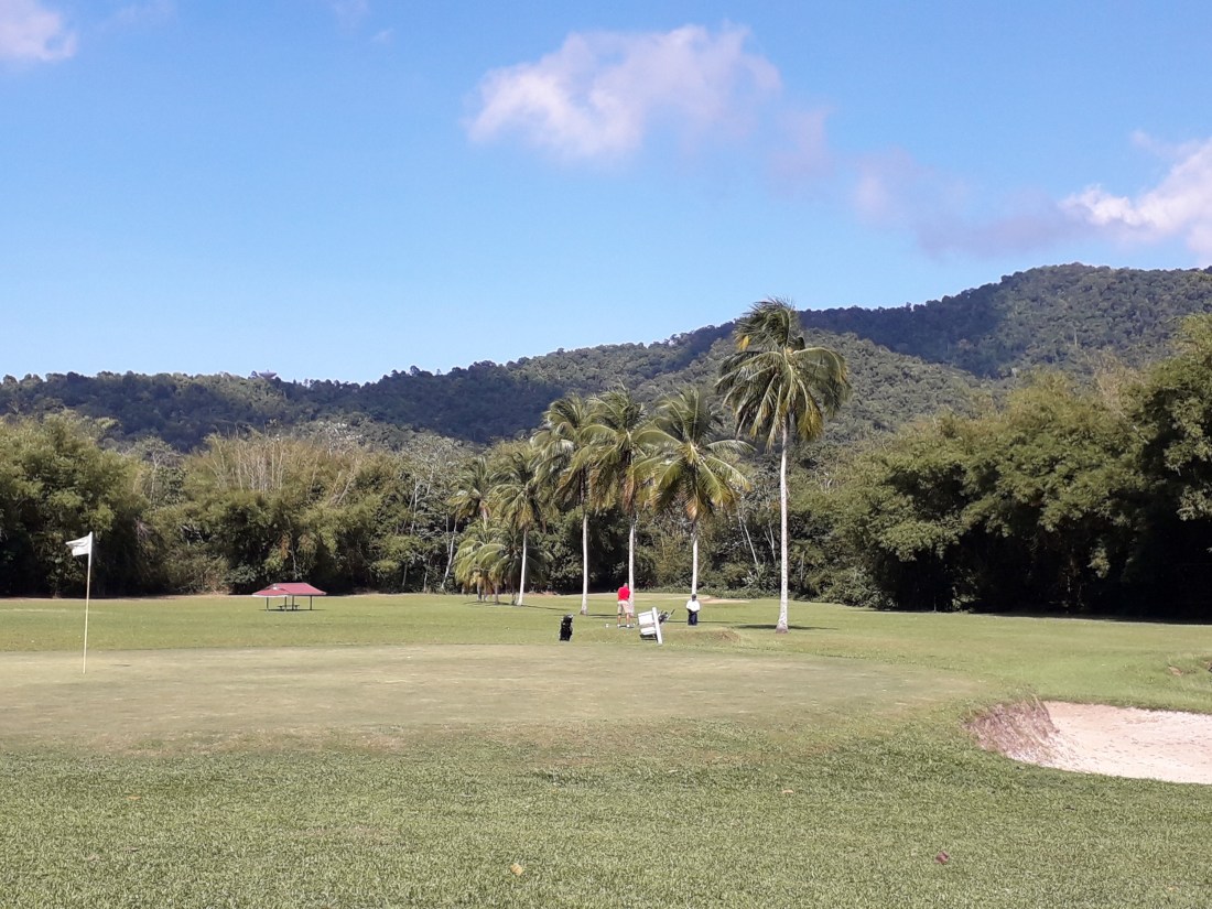 Et puis, au retour, détour par le golf , un peu plus loin sur la droite, pour une bière bien fraîche. Mmmm c’était bon ! Un peu basique le golf, pas le chicos des golfs qu’on voit habituellement… mais de magnifiques pelouses vertes et on voit qu’ils n’ont même pas besoin d’arroser !