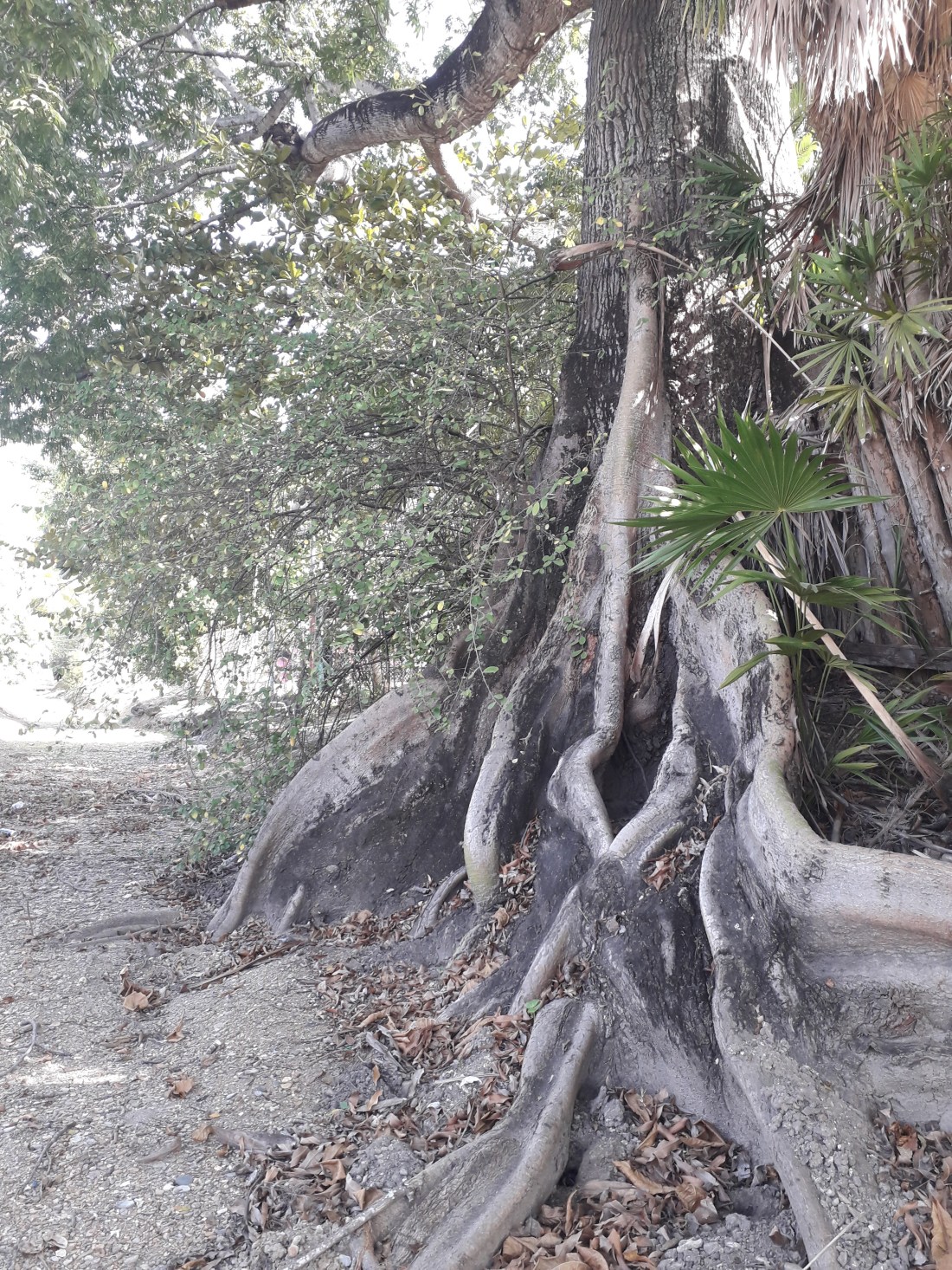 Mina passe ses journées cachées on ne sait où, dans les racines au pied des arbres à côté du bateau. Magnifiques ces racines, un fromager on nous a dit, appelé aussi kapokier .
