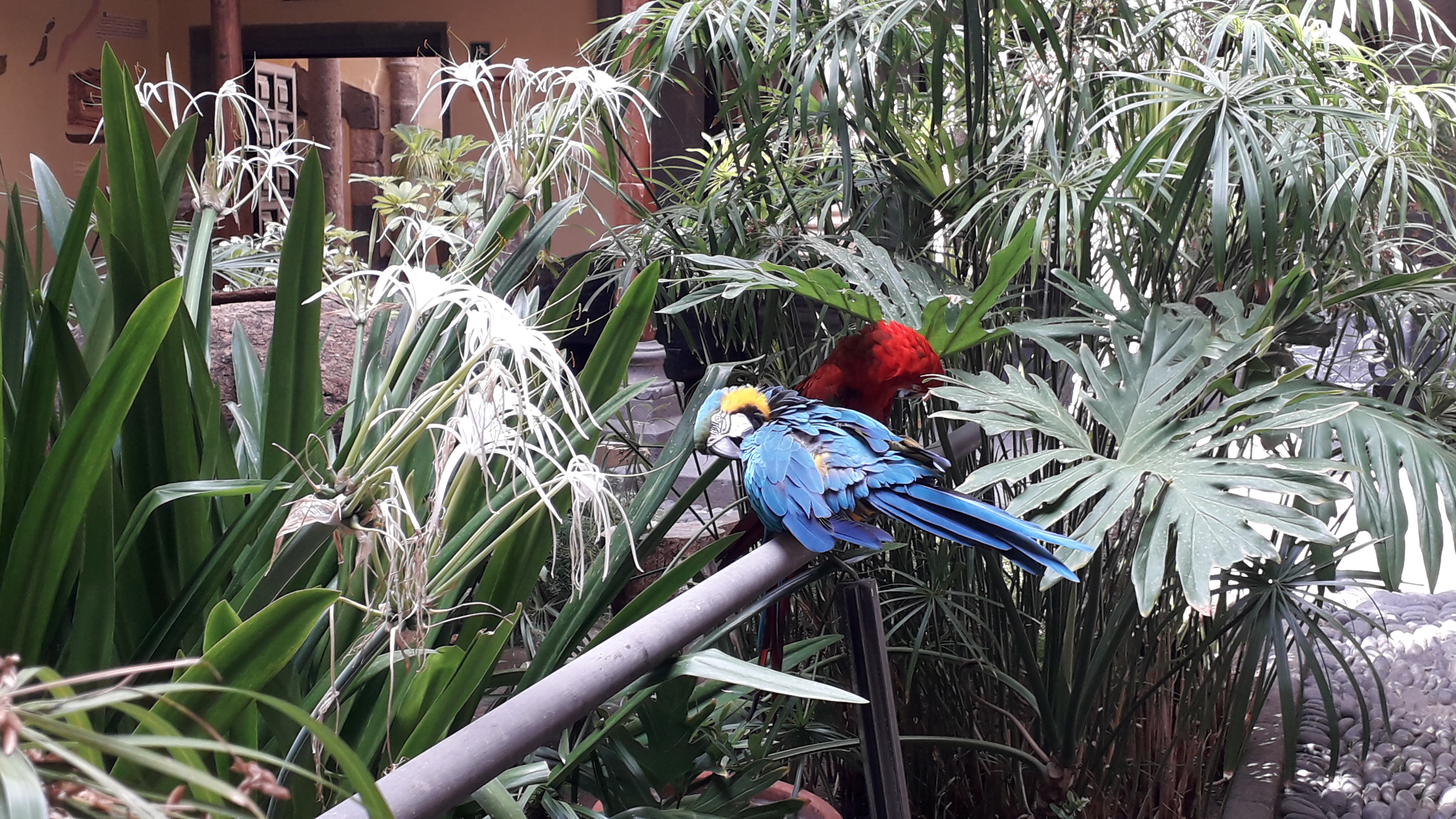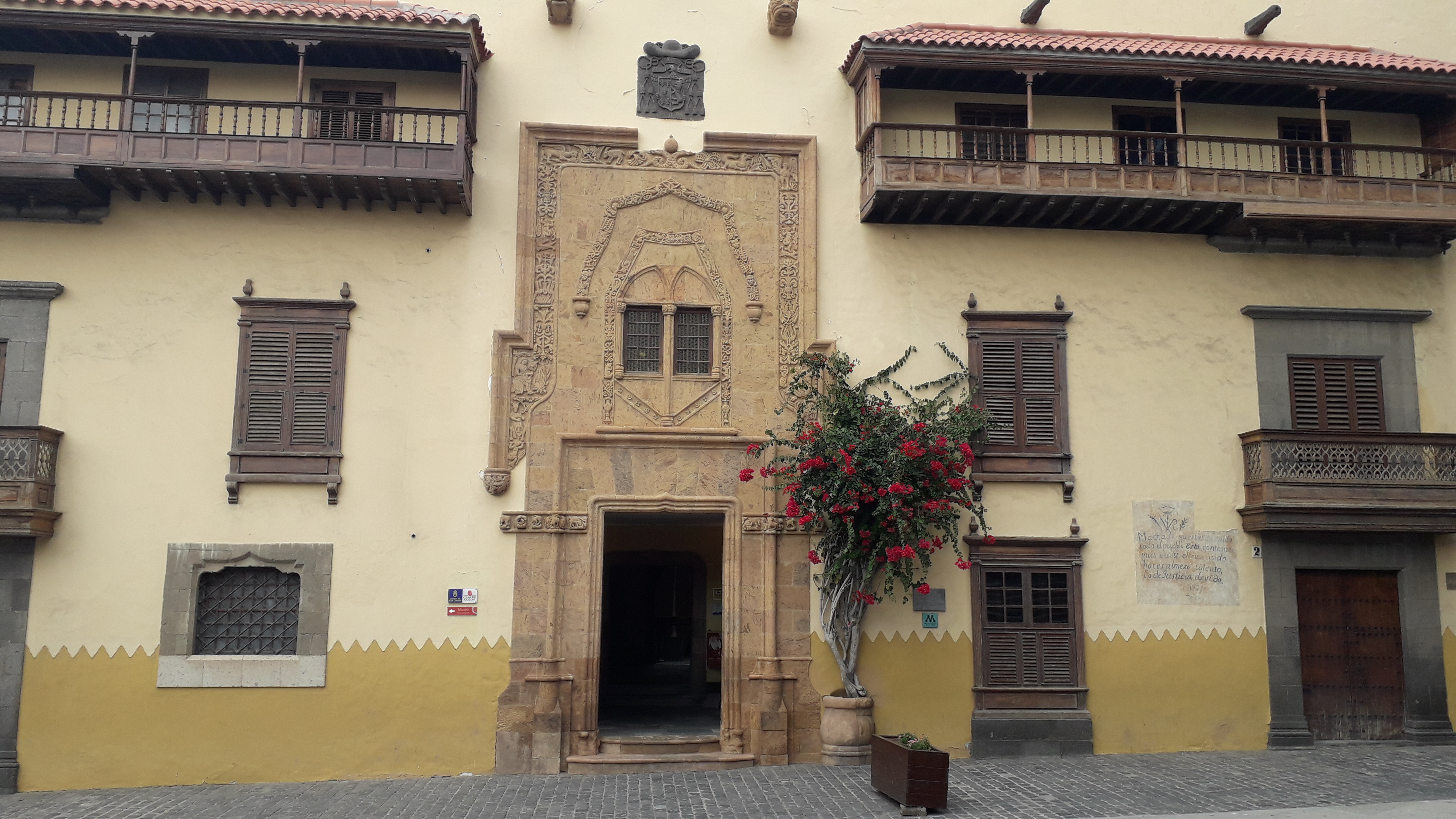 Belle demeure qui a traversé les siècles sans aucun remaniement, d’après ce qu’ ils disent. Encore une maison dans laquelle il devait faire bon vivre. 3 beaux patios ombragés, des plafonds à caissons trop beaux, de beaux escaliers … et des expos intéressantes sur les voyages de Colomb, la navigation à l’époque, Gran Canaria… de belles maquettes … deux aras dans le patio pour rappeler ceux que Christophe Colomb avait rapportés en cadeau la reine Isabelle de Castille.