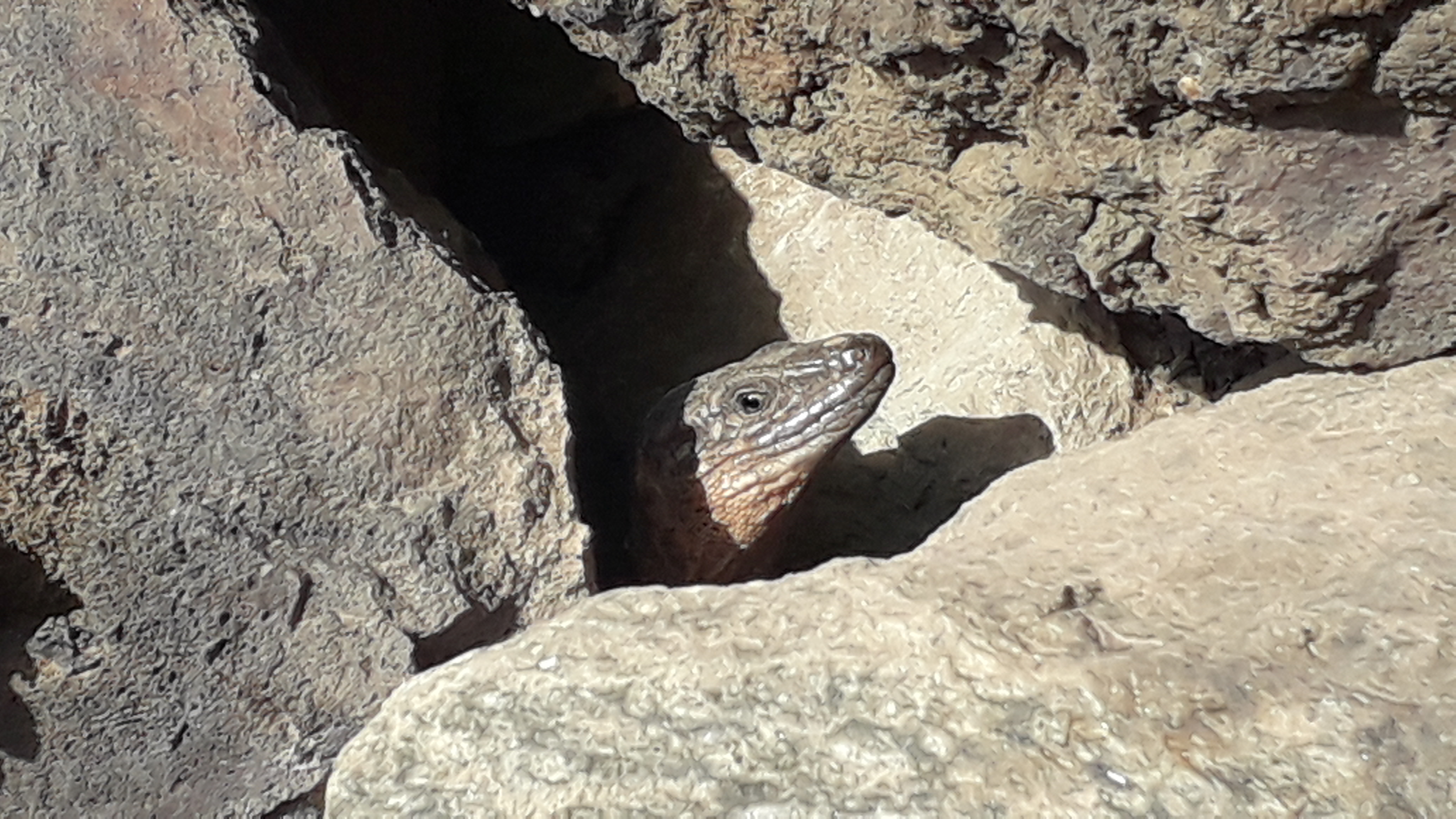 Direction le Roque Nublo, le pic des nuages car il est souvent noyé dans les nuages. Nous, il est noyé dans une mer de ciel bleu. On laisse la voiture pour monter à pied vers le sommet indiqué à 1,5km.
