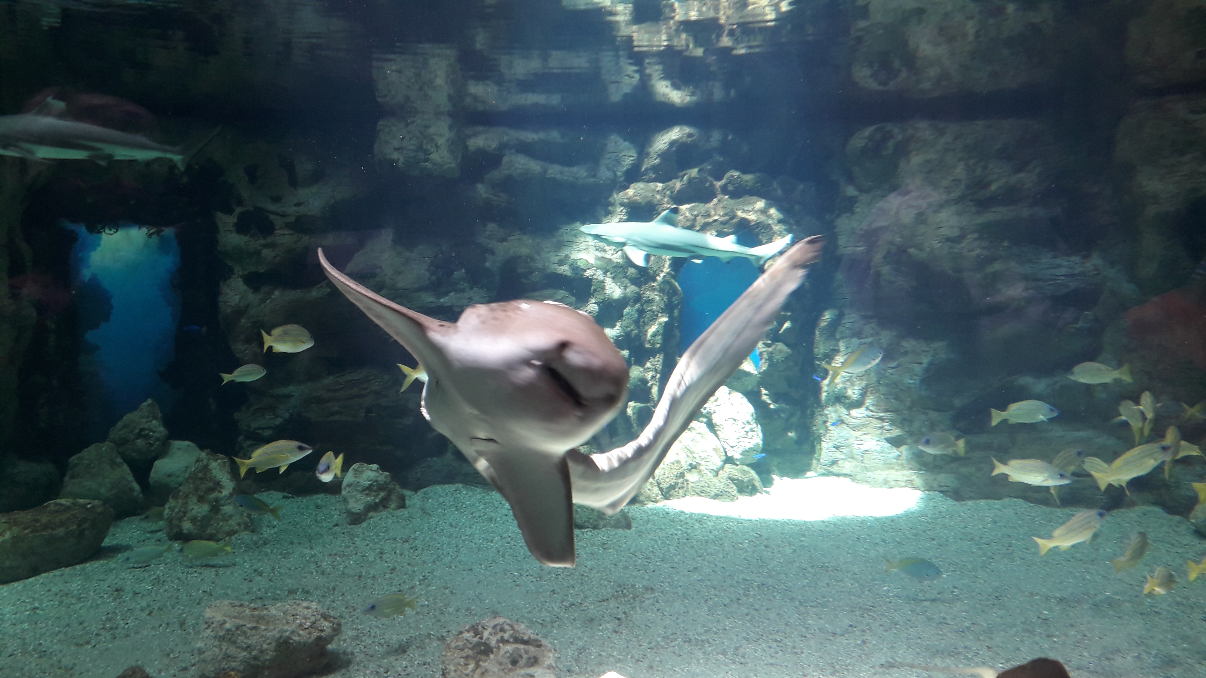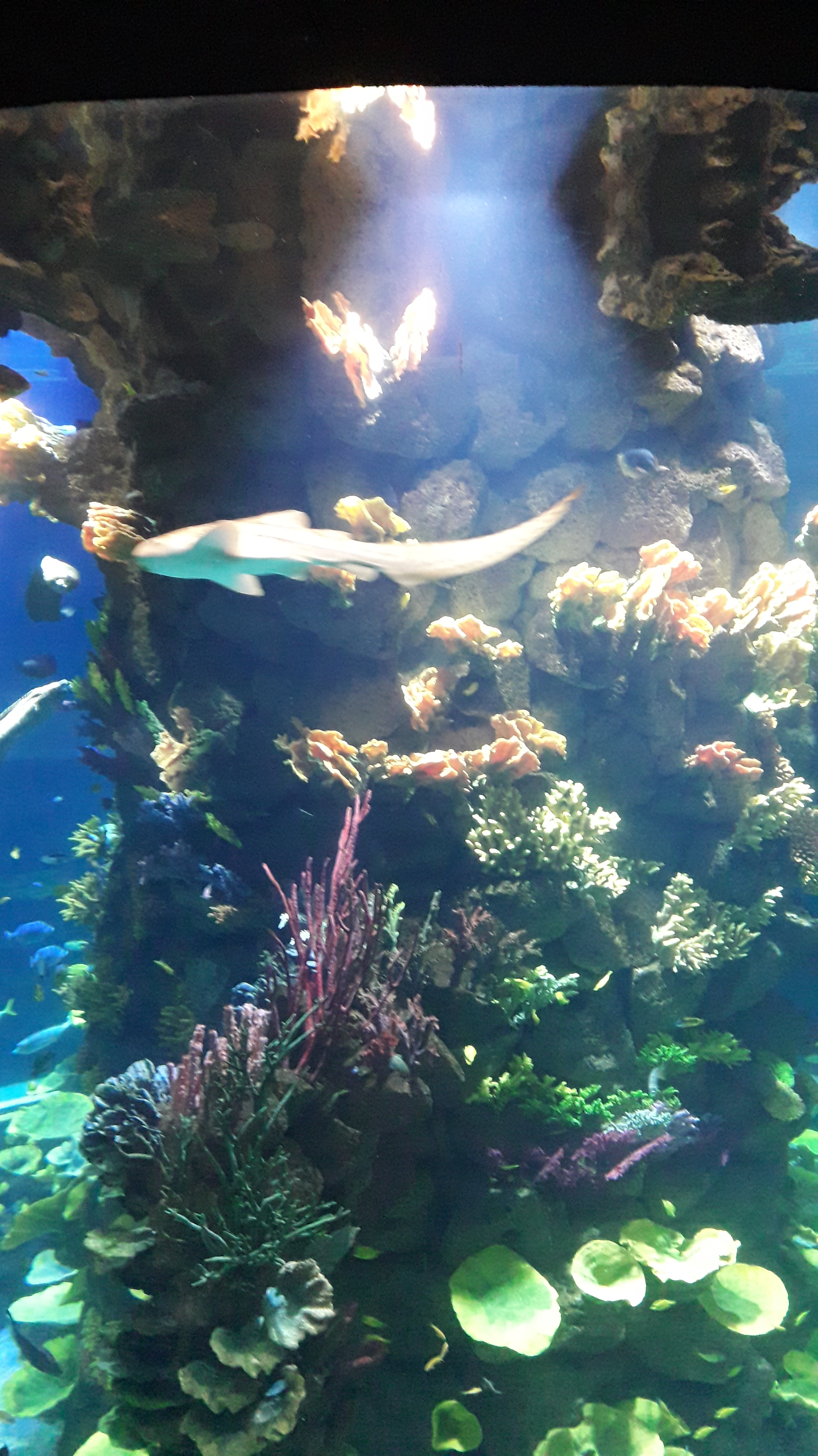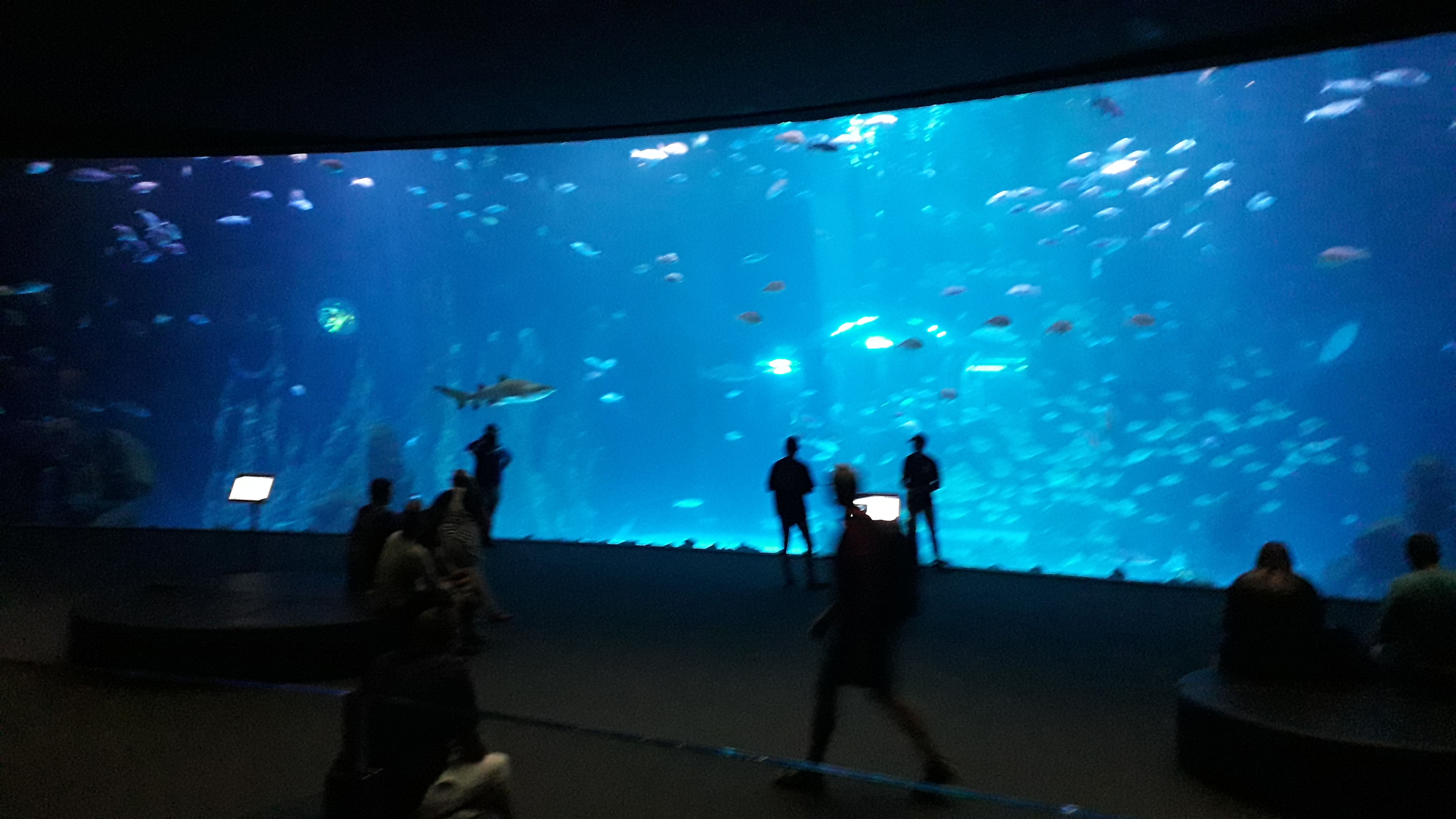 Et une foultitude de poissons en tout genres, de requins, de raies, de murènes de toutes sortes, des tortues, des crocodiles, des tas de petits poissons de toutes les couleurs. On s’en met plein les yeux et on passe de longs moments assis, devant les grands aquariums, à rêver doucement en regardant les poissons tourner.