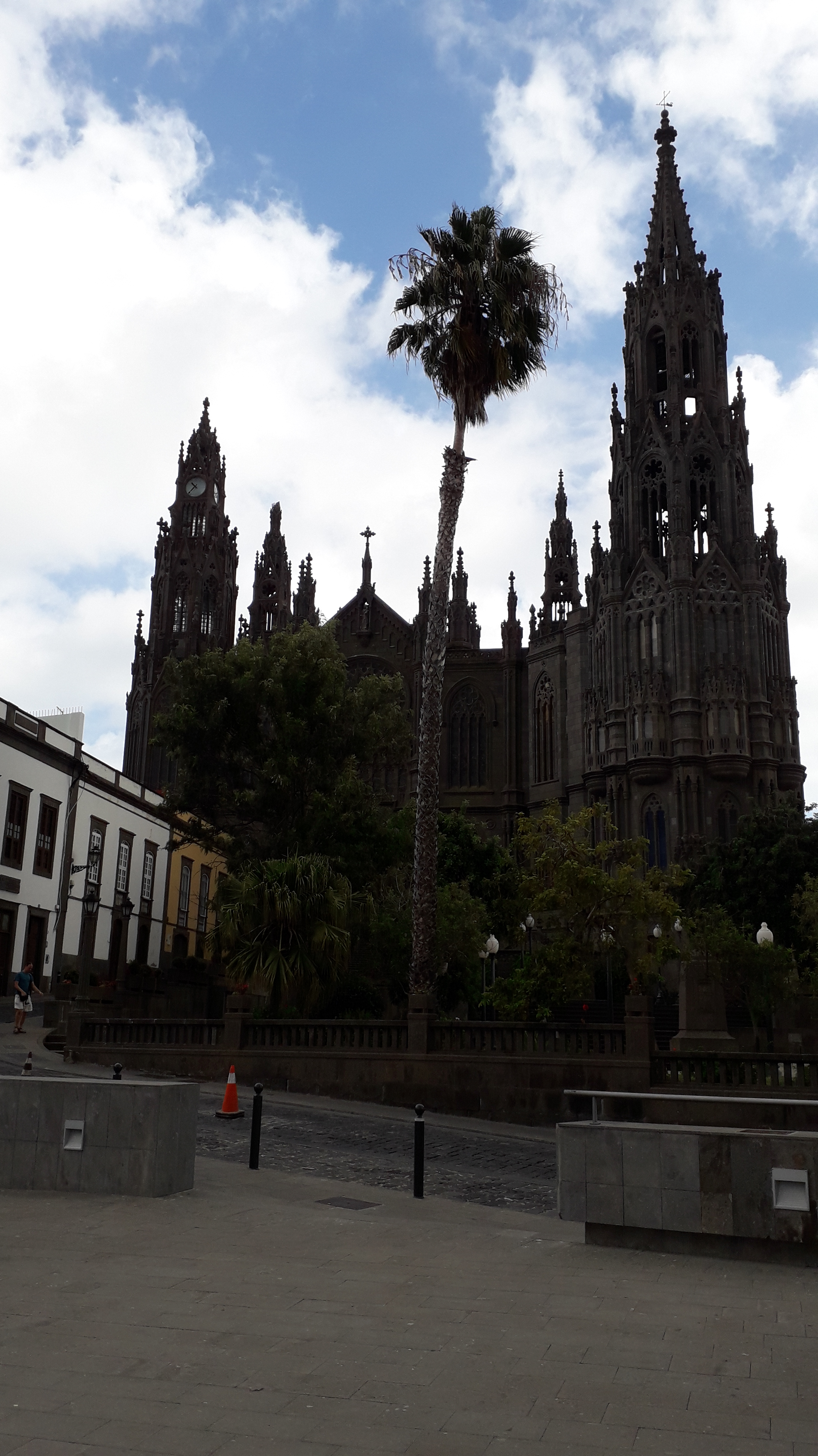 Arucas, capitale de la culture bananière, une énorme église néogothique construite au début du XXème siècle, mais selon des techniques à l’ancienne si bien qu’ on l’a croirait bien plus vieille.
