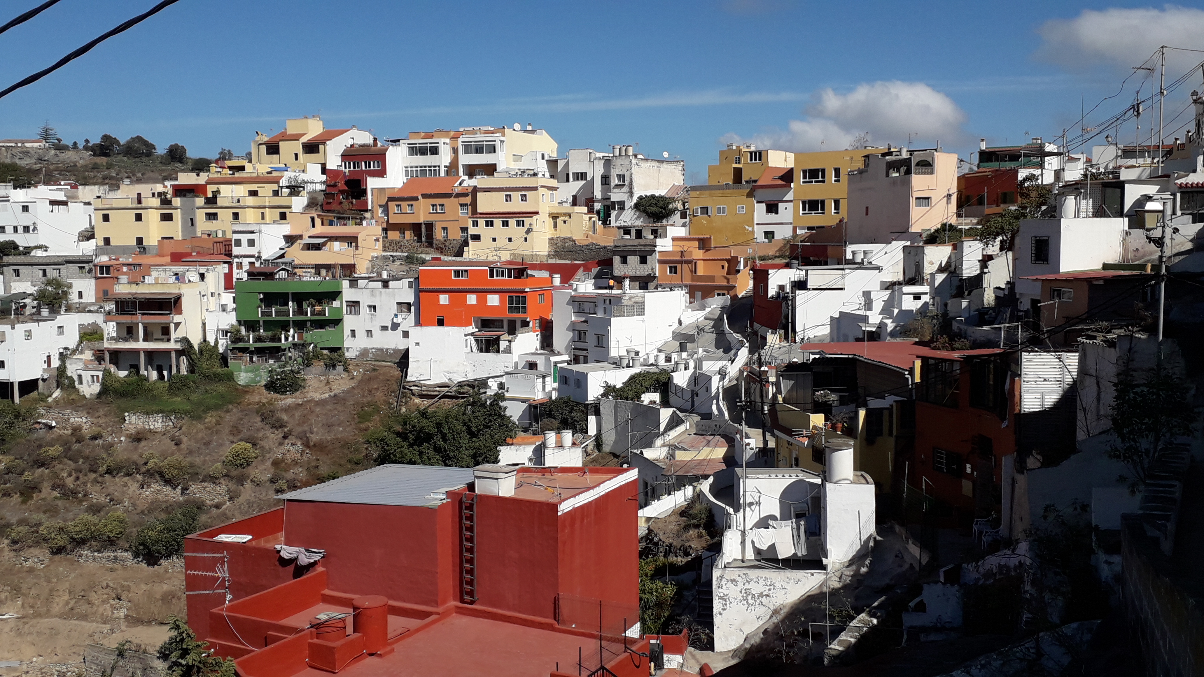 Hier, nord de l’île. Arucas, Firgas, Moya, des villes avec de jolis centres historiques, de belles demeures et surtout des arbres, du vert, quel changement après le paysage minéral de Lanzarote ou Fuenteventuras.