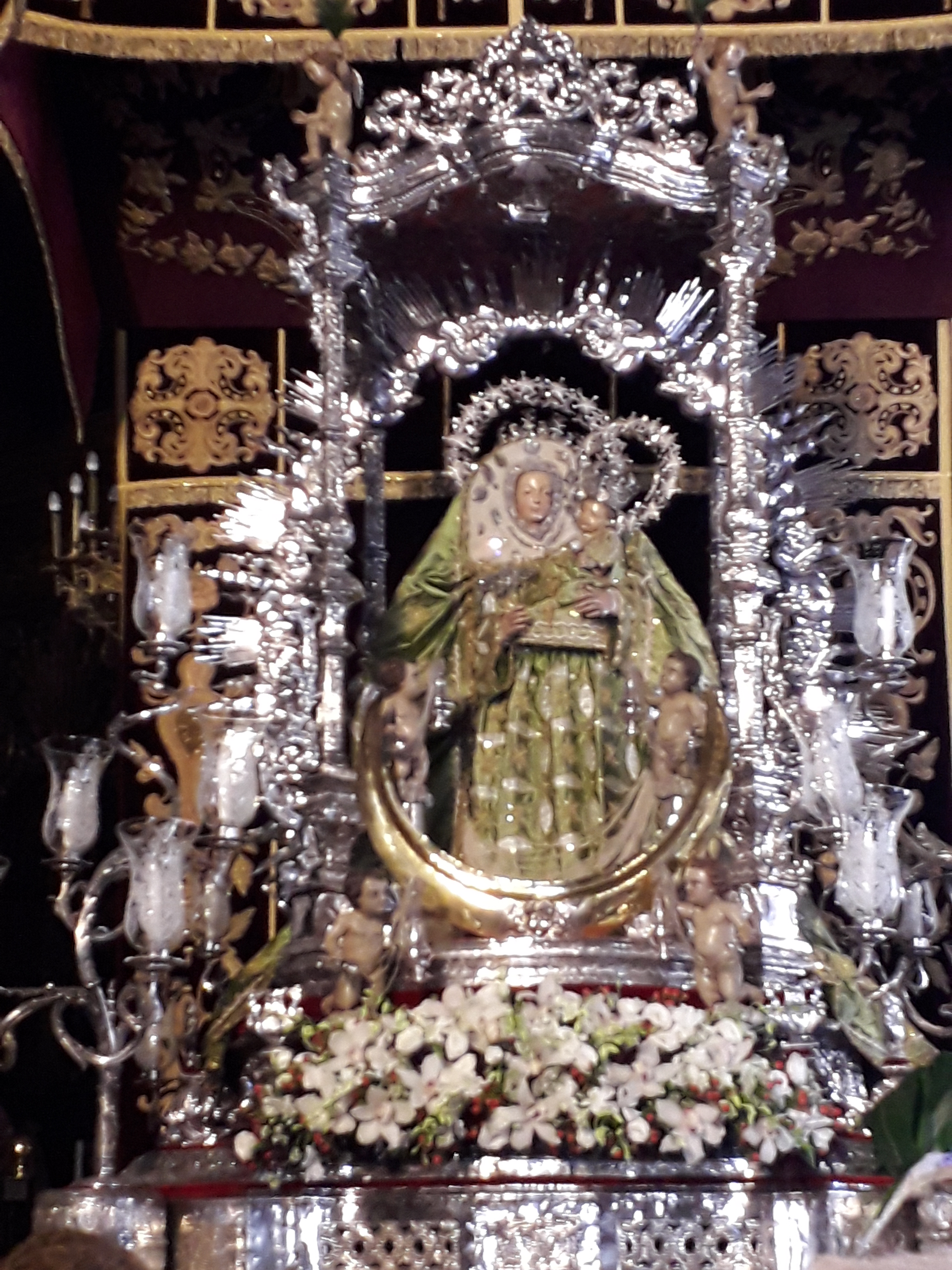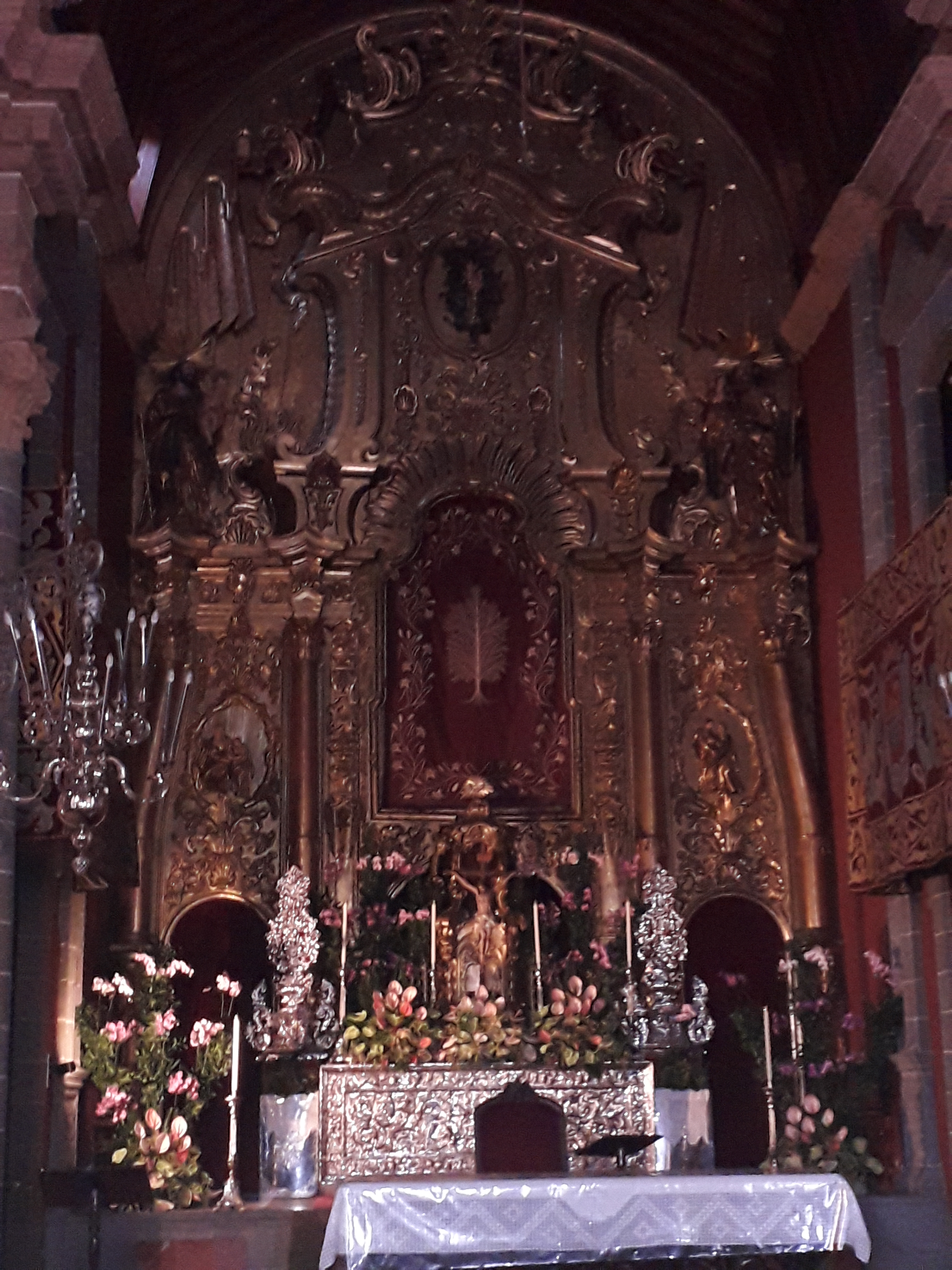 Le dai en argent de la Vierge était toujours présenté dans l’église, entouré d’une foule pleine de ferveur … et de portables, pour faire des selfies !