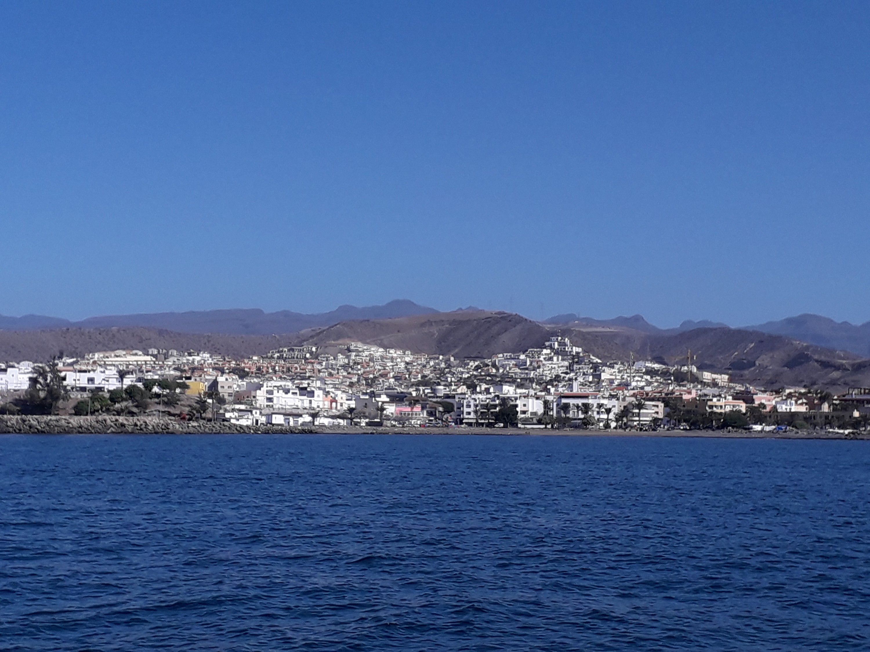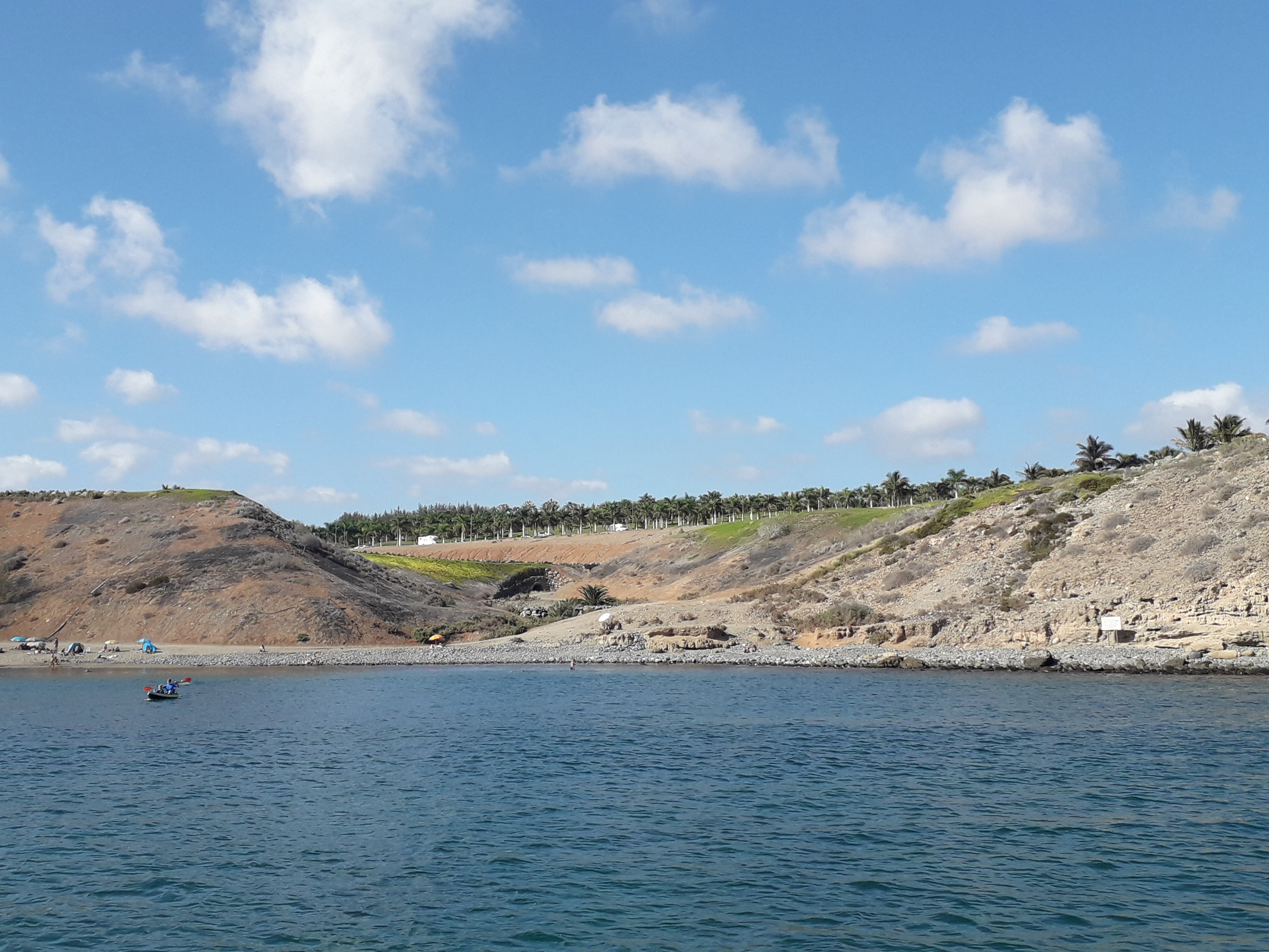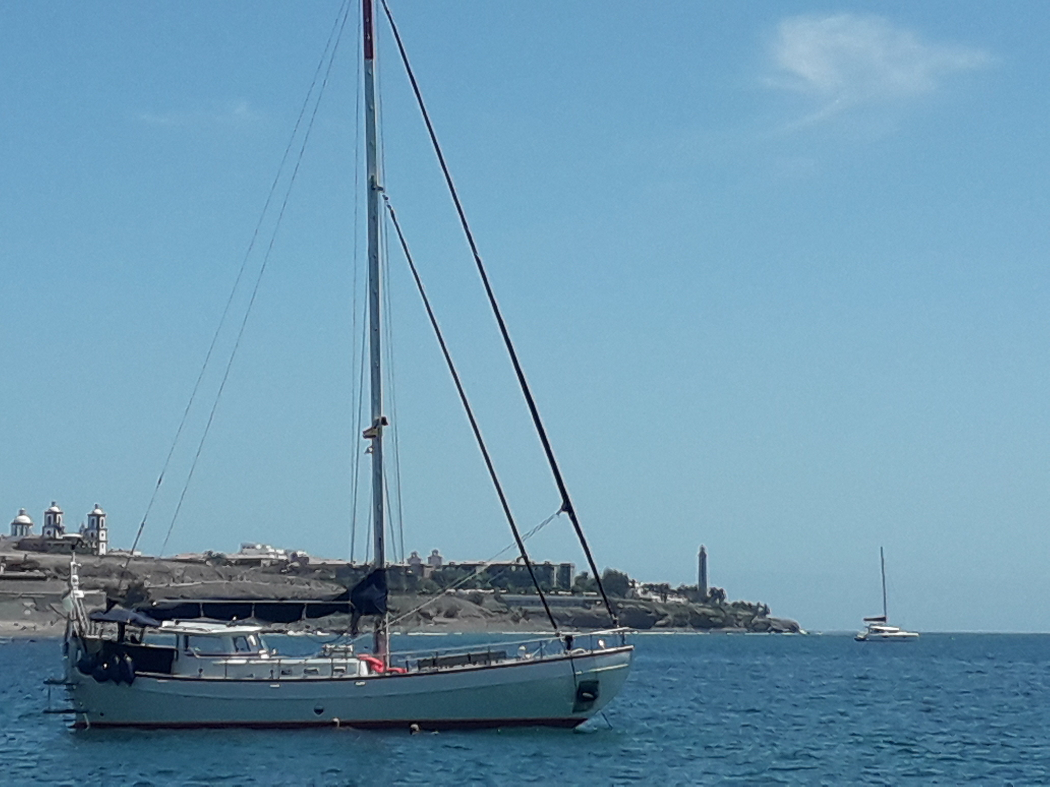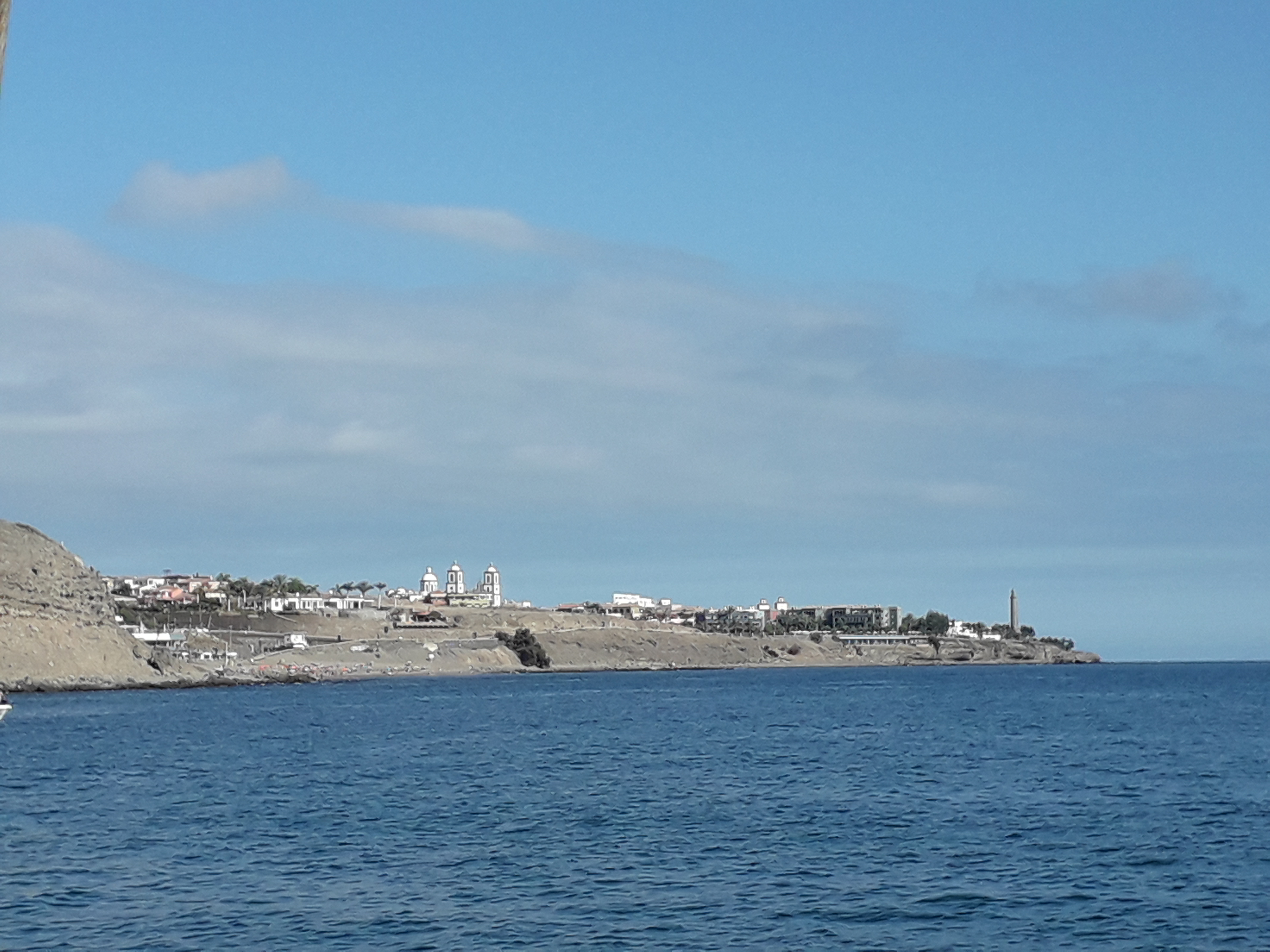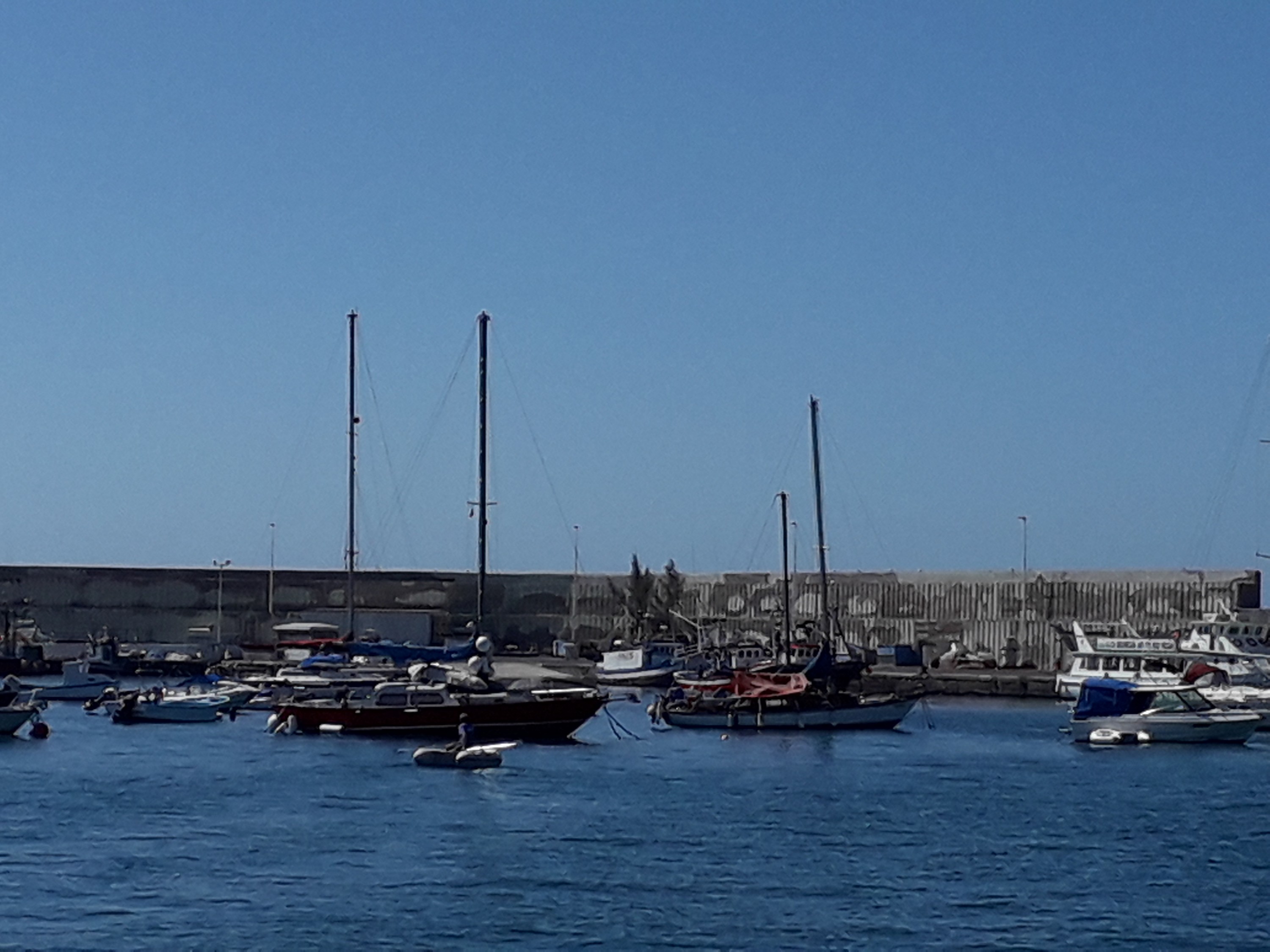 Voilà on est mouillés devant le petit port de Pasito Blanco, aussitôt après avoir tourné à droite en bas de l’île !