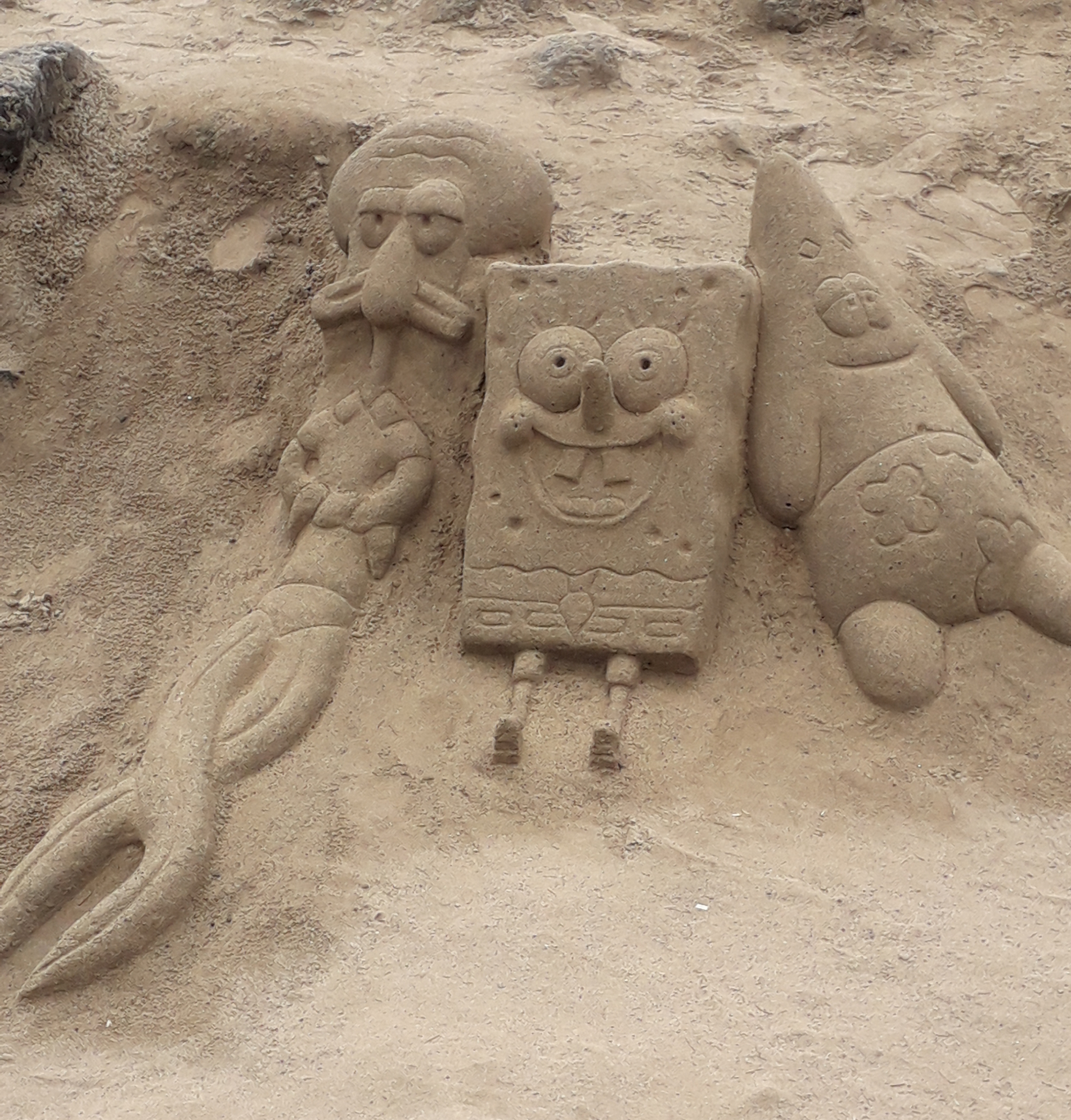 Et puis, sur le bord de mer, des sculptures de sable, faites par des surfeurs, pour gagner des sous, entre 2 vagues ! Plutôt pas mal !
