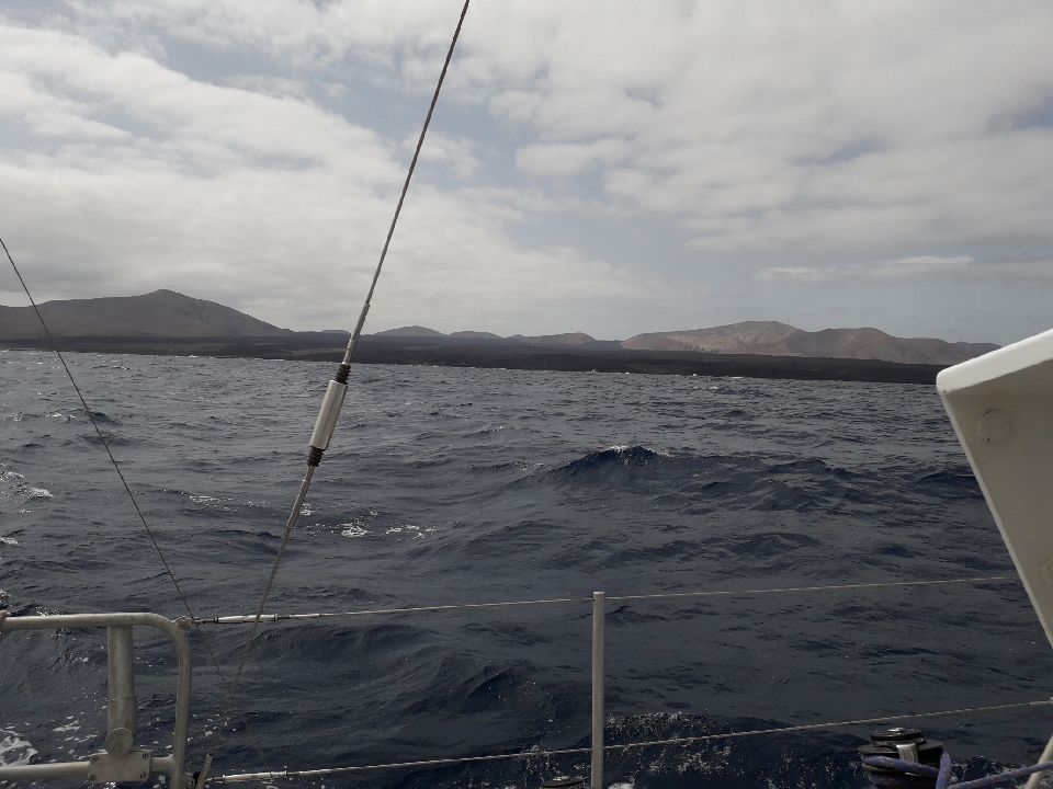Navigation de rêve ce matin pour venir . Un bon vent qui nous a poussé à bonne vitesse jusqu’à Gran Tarajal sous génois seul ! Même pas besoin de mettre la grand voile, on serait allé trop vite ! …