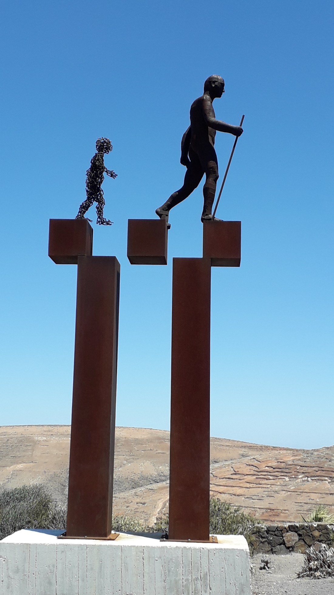 Plus loin, nouveau point de vue avec une très belle statue qui raconte d’une façon émouvante l’éducation en devenir, difficile, à la limite sans cesse de l’équilibre, des enfants.
